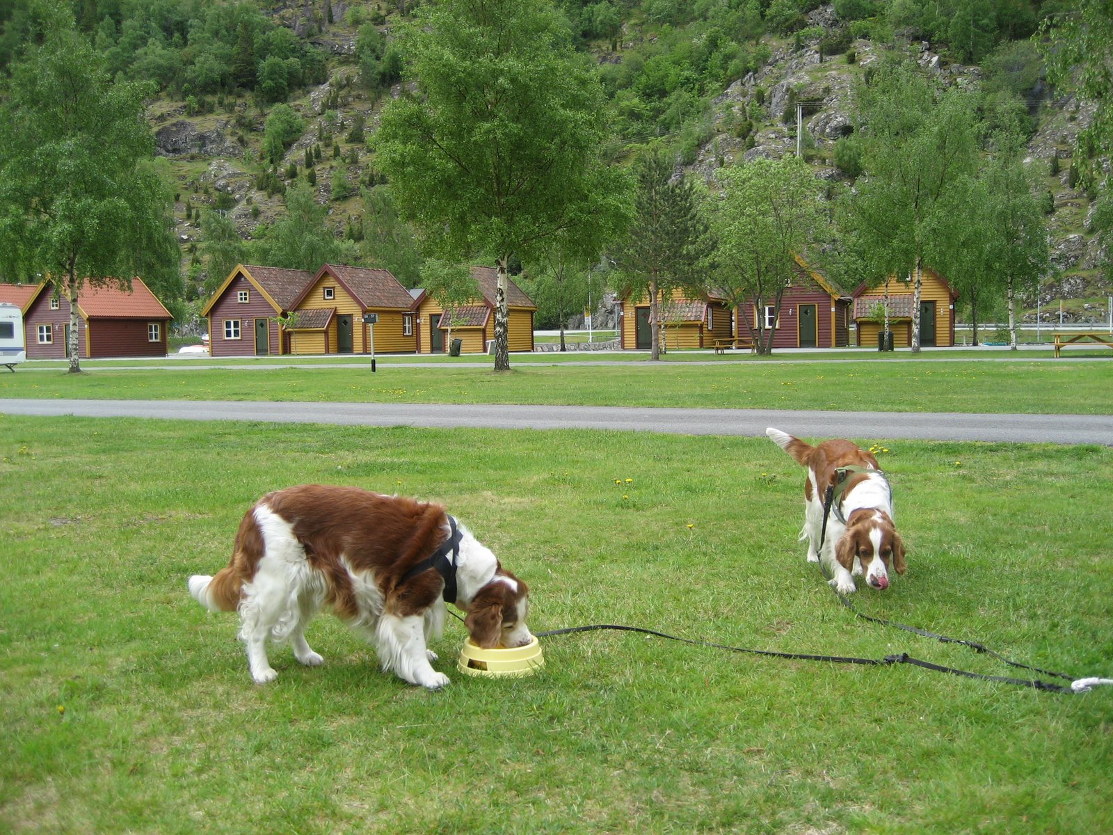 Ettersom det var langt utpå dagen da vi endelig kom oss avgårde ble første stopp denne gangen Lærdal – noe vi ikke angret på. Vi tok inn på Lærdal Ferie og Fritidspark. Hvilket nydelig sted ! Helt nede ved vannet og med en arkitektur på bygningene nydelig tilpasset lokal tradisjon. Småpikene spiste sitt første ferie-måltid ute. Legg merke til utleiehyttene i bakgrunnen – dette må da være Norges peneste campinghytter. Sanitærblokken var det reneste og peneste vi har sett på lenge. 165 NOK. Dessverre hadde vi kun pappvin å feire med i kveld: Fumèes Blanches.
