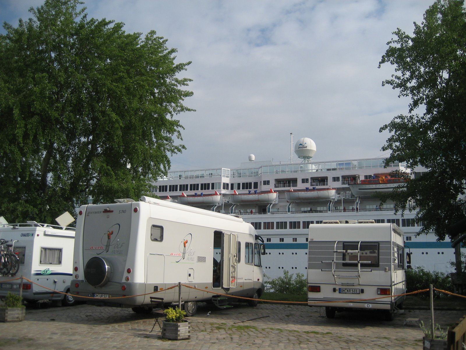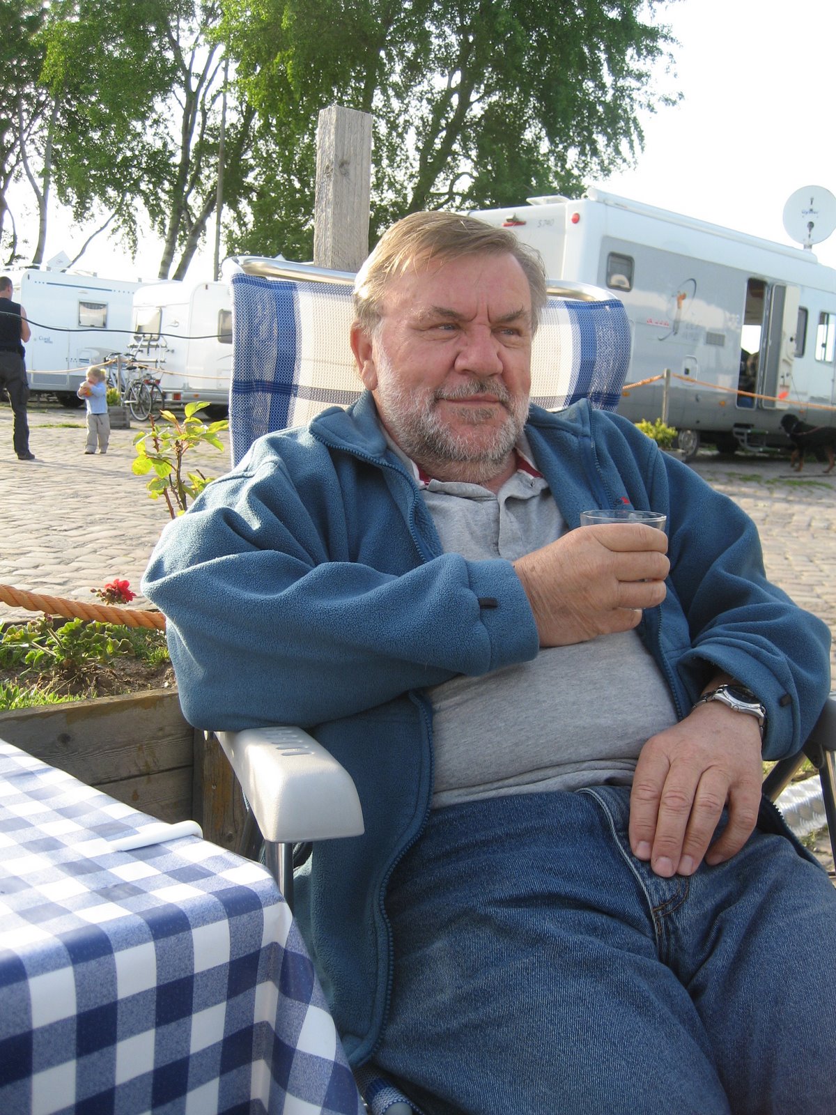 Om natten ble det stukket en reklamebrosjyre fra en stellplass i Kiel under vindusviskeren og vi bestemte oss for å dra der som neste stopp. Det var bare en time unna så vi tilbrakte formiddagen med en liten tur rundt i Heilaghafen. Og der måtte naturligvis Ray (som for øyeblikket er båtløs – eller «between boats») inspisere den mega-store yacht havnen. Her i utlandet er det litt annen fordeling på båter enn i Bergen – her er det 90% seilbåter og 10 % motorbåter. Så dro vi videre til Kiel – ikke motorvei i dag men nydelig «grønn» rute. I Kiel tar vi inn på stellplassen som ligger ved innløpet til Kiel-kanalen. Den ligger helt ved kanalen og de som har plass lengst fremme kan nesten ta i båtene som kommer forbi i slusen. Med så mye båter på en dag var det på tide at Ray fikk en ankerdram da vi var vel innstallert. Senere gikk vi på tur med hundene til slusen og sto der og kunne se når den åpnet og lukket seg når båtene kom. Det var full underholdning bare å sitte langs kanalen å se båtene som gikk forbi. Har vært mye ute i dag og har visst klart å bli litt solbrent. Om kvelden er det igjen middag på terrassen med svinekoteletter – svenske nypoter (helt himmelsk – hvordan klarer svenskene å gro slike fantastiske poteter ?????) og andre halvdelen av den tollfrie Torre Oria reserva especial 2002.