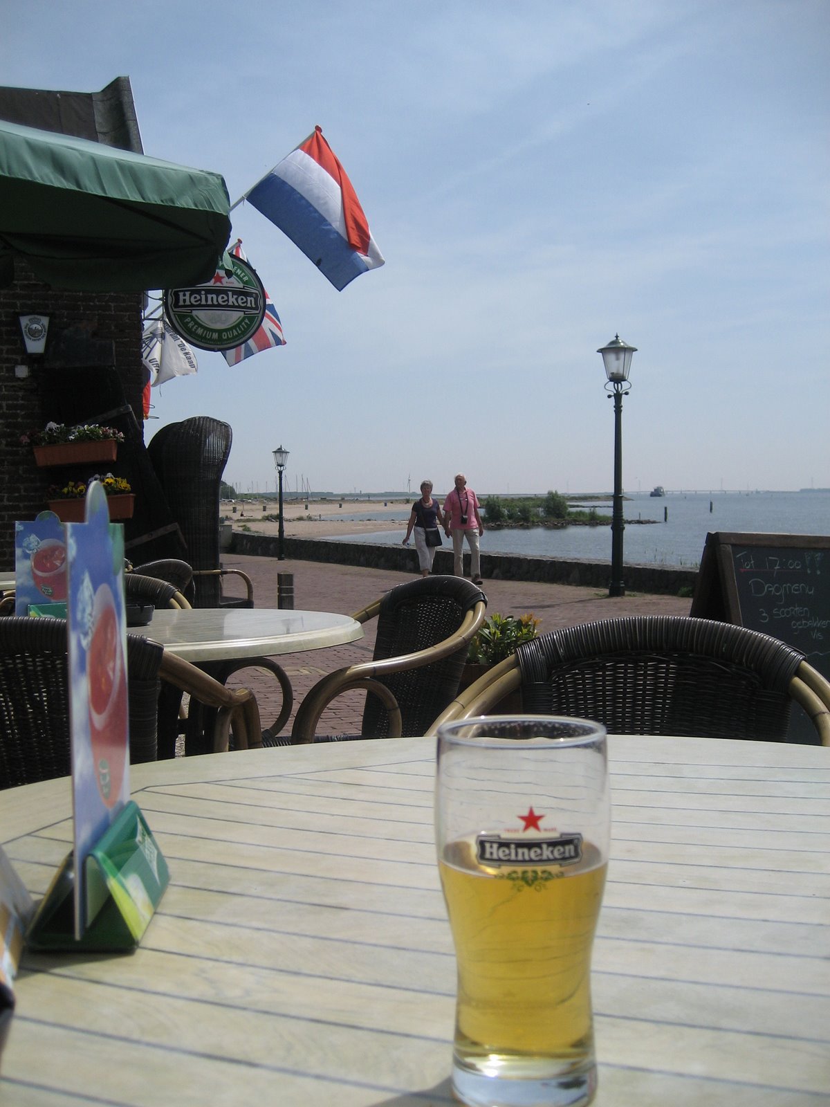Denne dagen hadde vi kviet oss til – motorvei gjennom Tyskland. Men det var søndag så vi håpet på det beste og at de fleste trailere var parkert. Vi forlater Kiel og drar mot Hamburg som er en ren flaskehals. Det var mye biler på veien, mest privatbiler og ved tunnellen i Hamburg som vi må gjennom for å komme under elven Die Elbe var det full stopp. Vi sto lenge i kø, men det er jo OK i bobil, vi har alltid termos og snacks i en kurv ved siden av «cateringsjefen», vi har ferie og ingenting haster så det er jo ikke synd i oss akkurat. Da Hamburg vel var klarert var det mer moro i vente – 72 km !!!!! med veiarbeid på motorveien mellom Hamburg og Bremen. Men vi kom nå gjennom det også til slutt. Endelig ved grensen til Holland er det slutt på veiarbeid og den tette trafikken. Vi har bestemt oss for å dra til Urk, en fiskelandsby nord for Amsterdam. Er ordenlig øl-tørst når vi kommer frem ved sekstiden og etter tur med hundene går vi på fiskerestaurant og spiser deilig frityrstekt flyndre og fantastiske hollanske pommes frites – og ikke for å glemme – deilig kald Heineken ! Ingen vin i dag altså. Været er nydelig og stellplassen i Urk er på «fisketorget» midt i byen. Og hva opplever vi her ?? Jo, her er det rånere ute og kjører om kvelden ! Og vi som trodde det var noe heilnorsk.