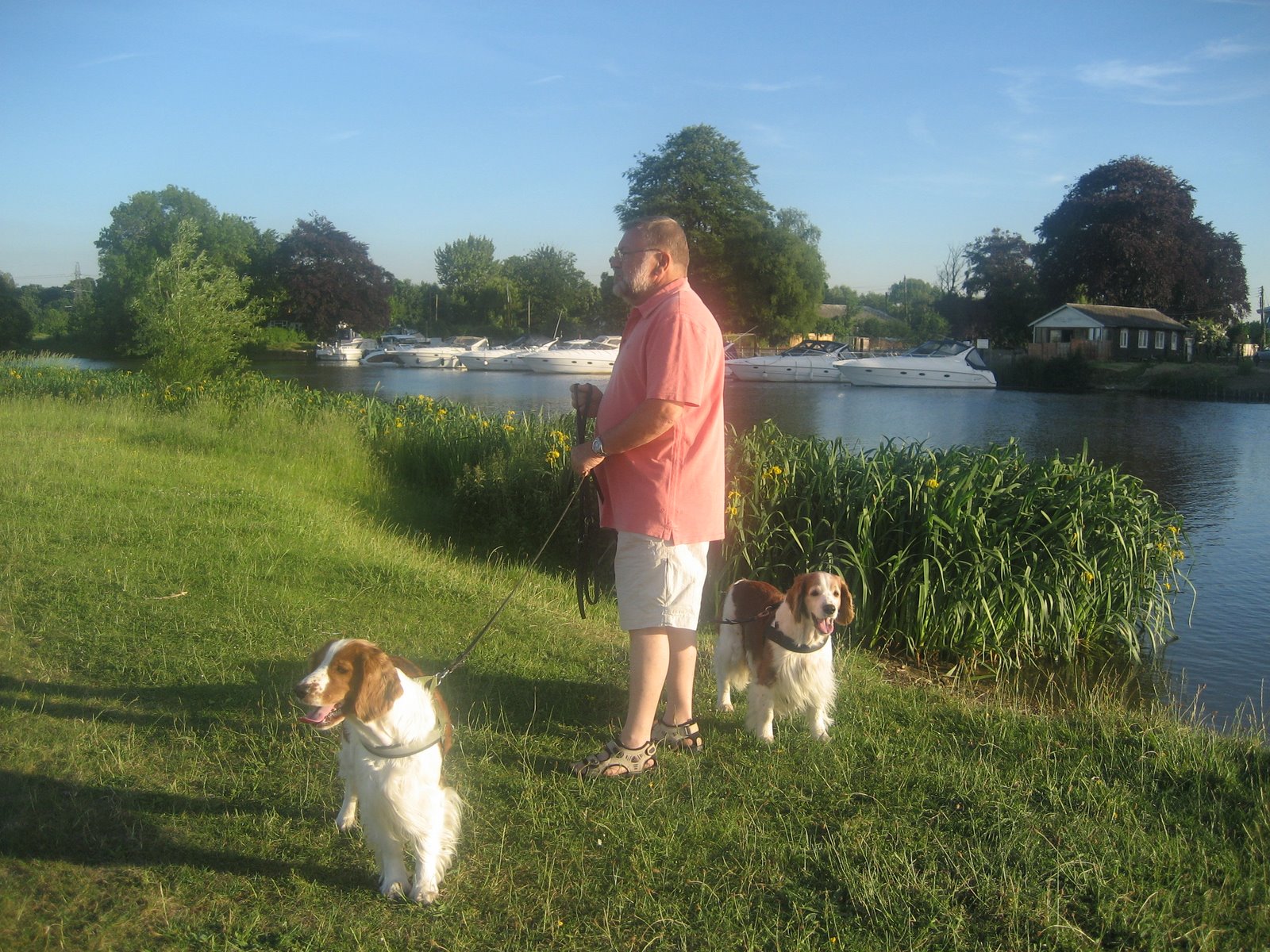 Nå er det på høy tid at vi firbente også får komme til her på bloggen. Ikke bare vin men welshies også. Vi er jo litt bereist vi også, har vært til mange land men aldri tilbake til de britiske øyer hvor vi kommer fra. Hver gang far har reist for å besøke granny har han sagt : «Kunne ønske dere kunne få være med, få jage kaniner og være med på pub’en.» Vel – endelig ble det nå vår tur også. Det har vært en lang reise og mye har vi opplevd underveis. Mange landeveier, motorveier, ferger og campingplasser. Med varierende innhold: kaniner, ender, ekorn, duer, gjess, katt, og et ukjent antall andre hunder. Har alle med bobil hund egentlig ? Av og til virker det slik. MEN endelig er vi da i good old England og her er det supert å være hund, spesielt her i Surrey. For det første har vi vært på pub, fikk dele en pakke med potetgull men den var med edikk !!! og smakte helt grusomt, så det sto vi over. Her i Surrey er det så fint å gå på tur, i dag var vi på lang tur og fikk løpe masse og bade i The