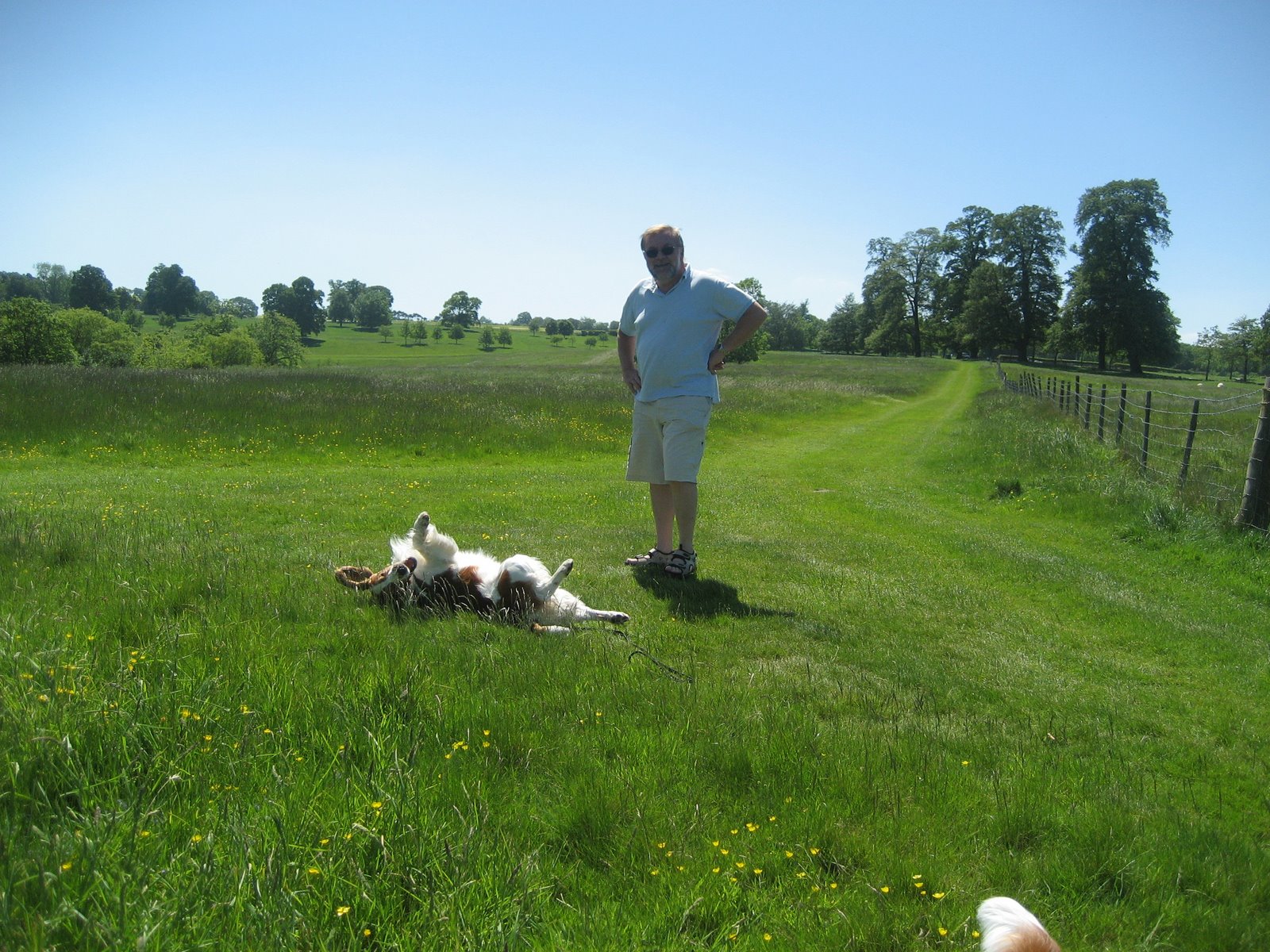 Forlater Canterbury og kjører en halvtimes tid for å komme til Leeds Castle som vi hadde tenkt å besøke i dag. Men etter en sen frokost og full husvask er klokken blitt 12 før vi kommer oss avgårde. Da vi kommer til Leeds Castle vil vi ta hundene på en skikkelig tur før de blir stengt inni bilen. Det er nydelig terreng rundt slottet og vi blir ute på tur lenger enn vi hadde beregnet. Det er gress og trær og sauer som beiter og av alle ting kommer vi også over noe så erke-engelsk som cricket-trening. Engelsk land-idyll på sitt beste.Se bare hvor lykkelig Pegi er på bildet hvor hun spreller i gresset. Godt at hun nettopp har fått flått-behandling. Da vi kommer tilbake til parkeringsplassen er det bare 2 timer til de stenger og da det koster 16 pund p.p. å komme inn beslutter vi å heller komme tilbake dagen etter. Da vil vi være tidlig ute