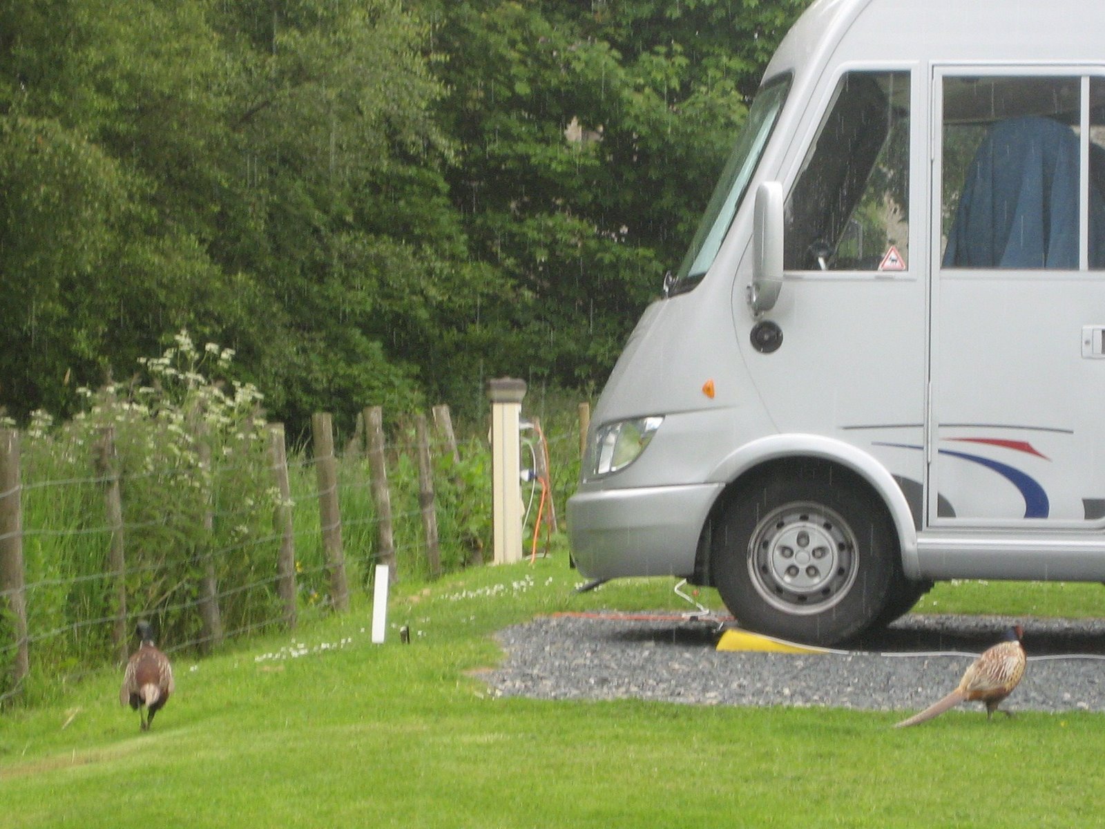 Det er veldig anstrengende å være hund på campingferie i England. For det er så mye å passe på. Ikke nok med kaniner og ekorn – nå er vi kommet til Yorkshire Dales og her er det altså tro-det-eller-ei FASANER som spankulerer omkring på campingplassen. Mor sier at snart må enten hun eller Pegi på valium, eller kanskje begge to. Truffet en kjekk kar har vi også, han heter Rusty, er 12 år og kommer fra kennel Typica i Wales. Han bryr seg ikke om å jakte på kaniner lenger men har gått over til ekorn, også jenter