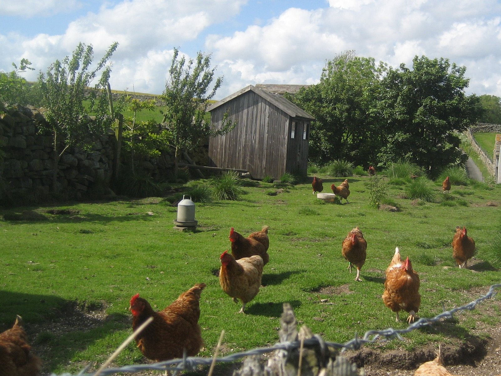 Så er vi kommet til James Herriot’s Yorkshire Dales. Det er nesten som om vi venter å se dyrlegen komme nedover en av de smale veiene i sin lille Austin. Her er det sannelig godt å være firbent. Yorkshire Dales er nå nasjonalpark og det ser ut som alle gårdene er økologisk. Dyrene går fritt ute på markene. Sauene er mye tammere enn hjemme, de små lammene kommer helt bort til deg så hadde ikke vært for skepsis til hundene hadde vi sikkert kunne klappe dem. Kuene går på markene og har kalvene sammen med seg, de blir ikke skilt ved fødselen slik som i Norge. Og hønene går fritt i hønsegården, der de forø
