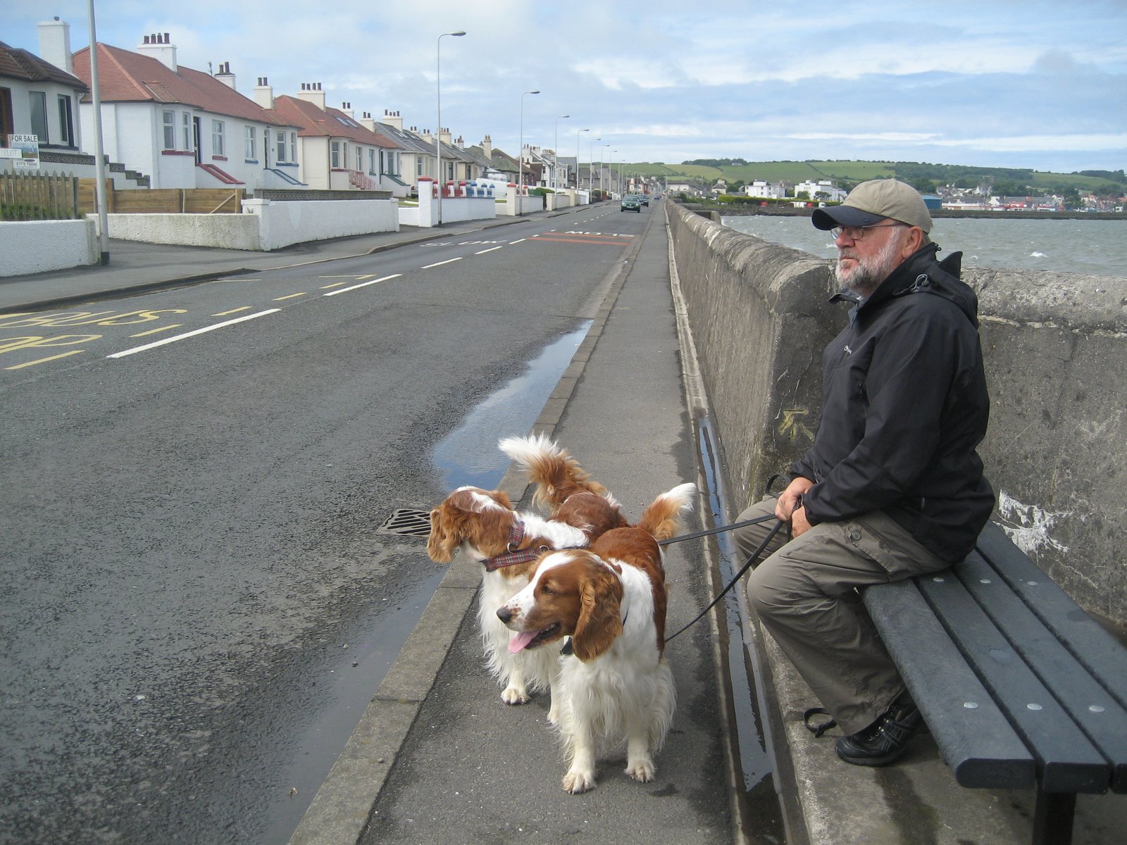 Ja så våkner vi til nok en dag med sterk vind og hvite bølger helt inni havnebassenget, så det er igjen uaktuelt for Mona å krysse irskesjøen. Så det blir litt handling i Stanrear, 2 nye krimbøker til Mona og litt mat, her er en stor Morrison supermarked her også. Ellers er det tynt med små idylliske puber her, ikke slik som i de småbyene vi har vært i England. Her heter det bar eller hotell og ser liksom ikke så fristende ut. Men vi har jo både internett og parabol TV i bilen så vi har underholdning nok. Underholdning for jentene er det også, det bor minst 50 kaniner på campingplassen. I engen ved siden av går det 5 shetland ponnier, og 2 av dem må ha ganske nyfødte føll, de er ikke større enn bikkjene. Dessverre kommer de ikke nærmt nok til at vi kan få tatt et godt bilde av dem, de er vel litt forsiktig når de har føll.