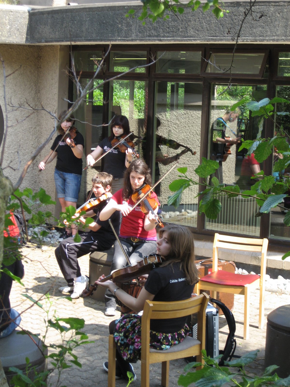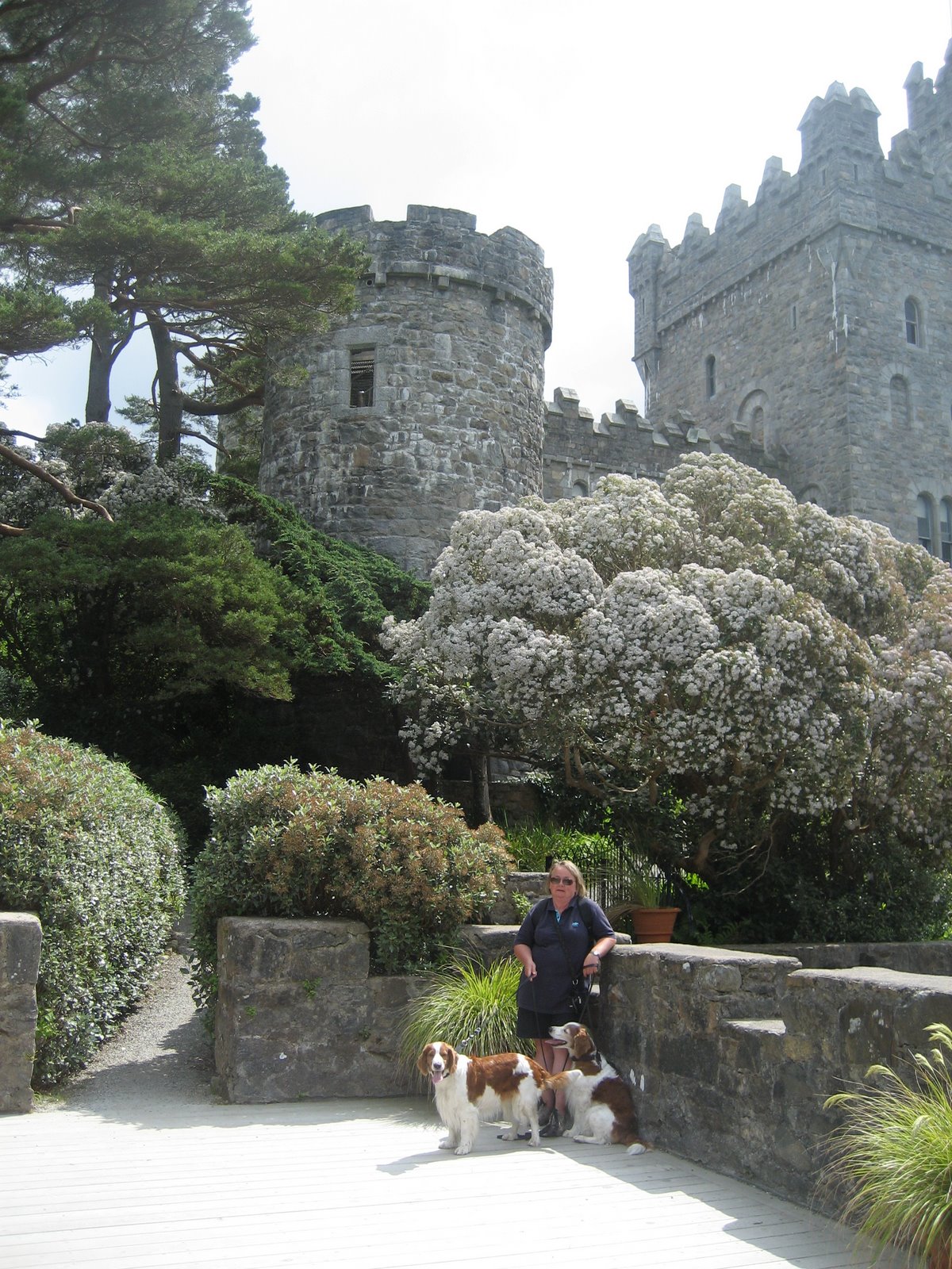 e hunder tillatt så hundeeiere er nødt til å være «sprek». Det var en fin tur innover og gudene skal vite vi trenger mosjon så vi skal ikke klage, men det er varmt så det legger en demper på «gåingen». Men Lili og Pegi får bade underveis (det var vel ingen som hadde nektet oss å bade i innsjøen heller men…….) Da vi kommer til slottet er det en del av hagen de ikke får lov å komme inn i heller men der er en fin ute-kafe hvor vi har 2 smørbrød og te (12 euro) og der får de lov å være. Da vi kommer tilbake til parkeringsplassen der det er et Visitors senter er der en gjeng med ungdommer som spiller tradisjonell irsk folkemusikk, det var jo festlig så