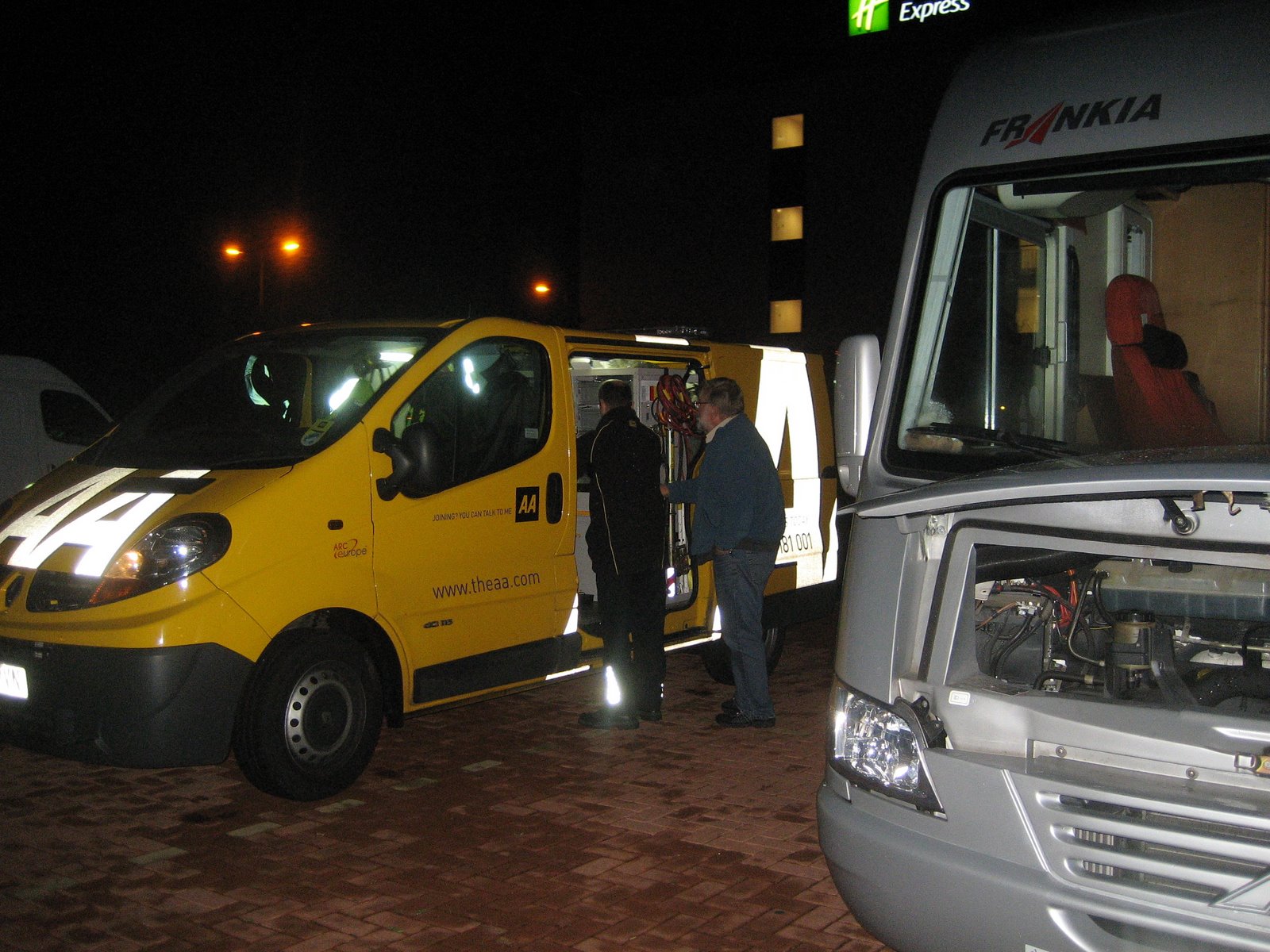 Vi kjører forbi Welshpool og over grensen til England nær Shrewsbury. Vi hadde tenkt oss til vår «gamle» campingplass i Chertsey i dag men da vi har vært og handlet på et supermarked i Wolverhamton får vi opp et rødt varsel-lys på dashbordet (kanskje det var fra kredittkortselskapet – ha ha) Vi kjører en stund videre men da vi kommer til Banbury ikke langt fra Stratford-Upon-Avon begynner vi bilen å hoste og riste på seg så vi tar av motorveien i full panikk. Vi ringer NAF som besørger bergingsbil, men når han kommer mener han at vi kanskje ikke trenger berging men en mobil diagnose stasjon. Så det blir bestillt og vi sitter da 3 timer på parkeringsplassen til Holiday Inn og venter på vår diagnose-mann. Klokken er blitt 10 på kvelden før han kommer. Han plugger i comp