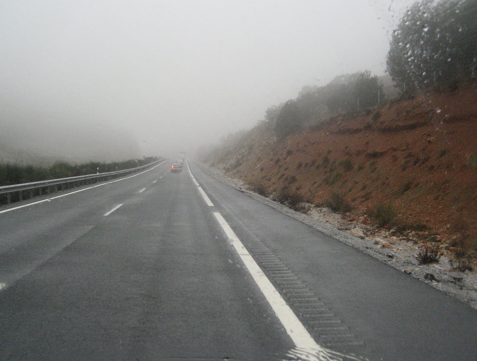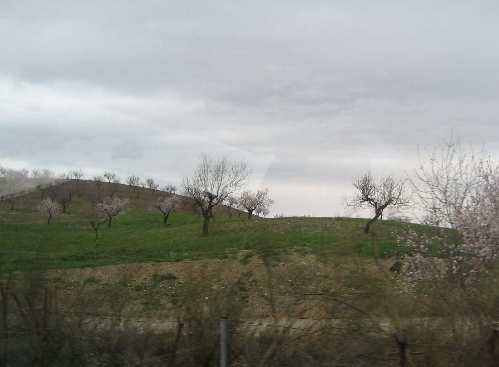Så var tiden kommet til å ta farvel med Costa Blanca og sette kursen mot innlandet selv om værmeldingene ikke var de beste. Forlater Alfaz del Pi i strålende sol og jo lenger bort vi kommer fra kysten desto gråere blir været, på et tidspunkt er det omtrent bare tåkedotter vi ser. Landskapet forandrer seg, det er mange bondegårder med parseller med forskjellig avling, noen av dem er mandeltrær felt i vekslende stadium av blomstring. Ellers er det mye oliventrær. Etter 4 timer på gode motorveier, de fleste gratis kommer vi til Granada og tar inn på Camping Reina Isabel – i øsende regnevær. Det er meldt fint vær i morgen så vi bestiller billetter til Alhambra (må ha reservasjon for å komme inn) i resepsjonen og håper på fint vær. Mannen i resepsjonen er veldig hjelpsom og sier at han har lyst å komme til Norge for å se fjordene og nordlyset. Vi forklarer at det må gjøres på forskjelling årstider slik at han må reise til Norge to ganger for å få med seg begge deler. Han spør litt om maten og Ray skryter av den ferske fisken ! (er han ikke riktig klok – har lest i BT at de har ferskere fisk i Madrid enn i Bergen). Fin campingplass, oppvarmet sanitærblokk, men nokså dyr – 23 euro, det er det dobbelte av hva vi betalte på bobilcampen i Alfaz. I tillegg ser det ut som det er et visst antall katter her så Pegi er i høygir.