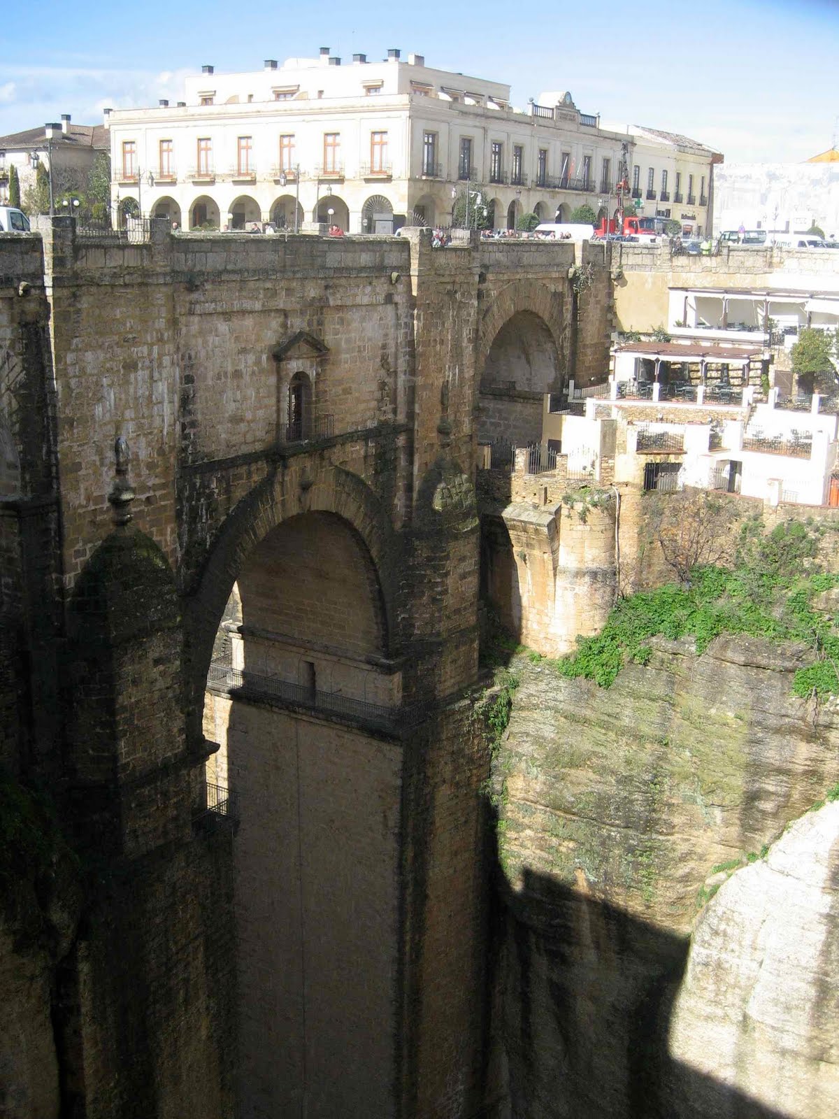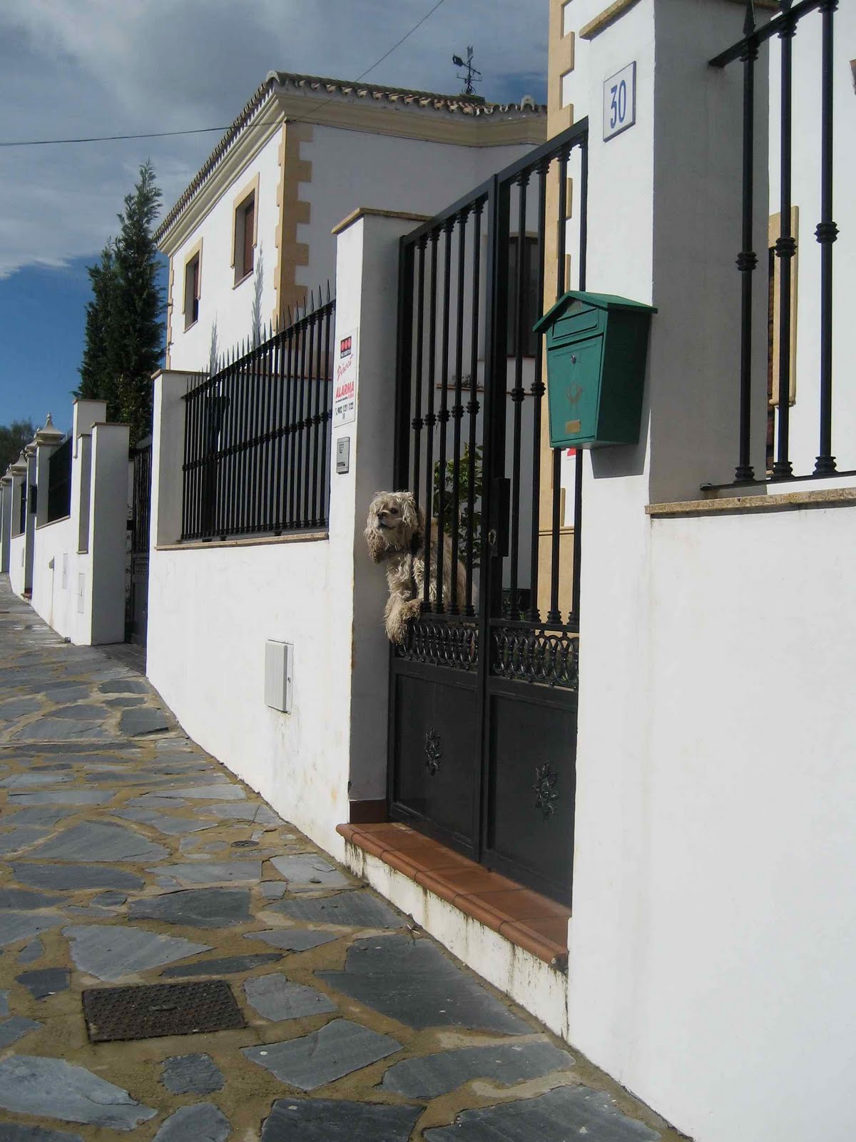 Så nå skulle vi få se byen hvor den deilige vinen vi hadde drukket på Bruno’s i Marbella kommer fra. Våknet til strålende vær men prisen vi måtte betale var frost på takvinduet, det er kaldt her oppe i fjellene. Men vi hadde en flott tur rundt i Ronda med hundene. På veien inn gikk vi forbi trær med parasitten misteltein på grenene. Det hadde vi aldri sett før. For ikke å snakke om sizen på rennestenene, det er tydelig at det er kraftig regnfall her ja. Det var så flott å komme til en ordentlig by hvor det faktisk bor fastboende og det har de gjort i hundrevis av år. Gamle byen i Ronda var helt fantastisk, der den omtrent henger over avgrunnen ned i dypet. Mona turde ikke engang SE ned fra broen, ble helt svimmel i magen. Utpå dagen løyet den kalde vinden og det ble lunt nok til å ha lunch på en fortauskafè. Så returnerte vi trette og full av inntrykk tilbake til campingen. Man på fine dager er det ingen fred å få. Da er det alle vinduer og dører åpne – full støvsuging og risting av puter og sengetøy. Sånn er det når du har reisekamerater som røyter, for ikke snakke om lar vær å tørke av seg på beina når de kommer inn. Så da rengjøringen var over bestemte vi oss for å premiere oss selv med et tapas-måltid på campingrestauranten. Men det serverte de bare til lunch. Så da tok vi dagens middag i stedet. Det var 3 retter + kaffe + et glass vin til 17 euro. Koselig restaurant med fyr på peisen og en stor TV skjerm med spanske nyheter. Der ser vi at det har vært oversvømmelser og jordras i Jerez, det er ikke langt herfra. Huffamei. Vi har tenkt oss til El Puerto del Santa Maria i morgen, ruten går forbi Jerez, men de har vel ryddet opp i løpet av natten…………