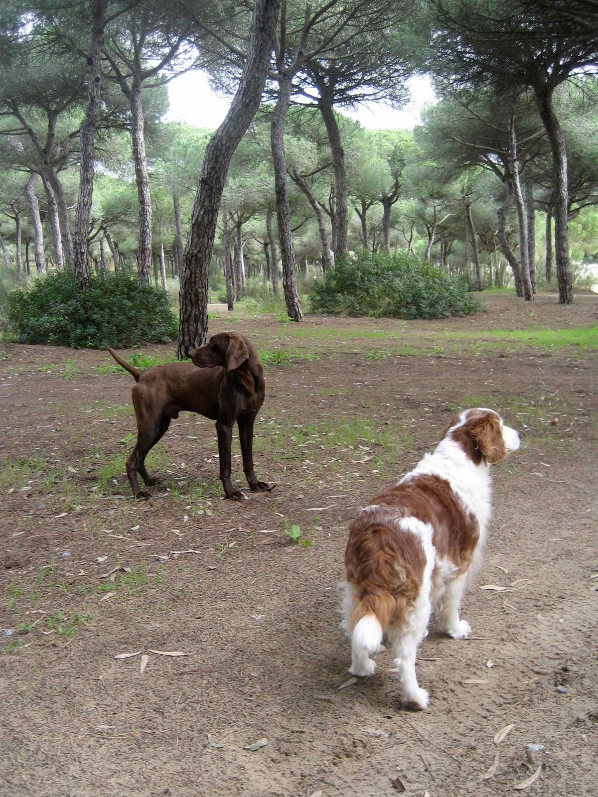 Kan tro det er fint her i El Puerto de Santa Maria. Her står bobilen helt stille – ingen humpete, svingete fjell-veier eller endeløse motorveier. Håper vi skal være her lenge, for her har jeg en hemmelighet, ja jeg og mor altså, for det var vi som traff ham. Rett bortenfor campingen er der en stor furuskog hvor vi hunder kan få lov å løpe løs, ja det er helt fantastisk, er jo ikke vant med denslags luksus hverken her i Spania eller hjemme stort sett. Og så er det så fine furutrær for de har bare grener på toppen av trærne slik at det er lyst og fint og masse plass og løpe på. Og det var på morgentur i skogen at HAN dukket opp. Santa Marias storsjarmør. Han var så gylden i kroppen og hadde så flotte muskler at jeg er sikker på at han driver med bodybuilding altså. Mor sa han het Don Juan, men hvordan hun kan vite det aner jeg ikke, for ingen eier så vi og han presenterte seg ikke akkurat heller. Bare kom bort og sniffet meg litt her og der (mest der) for så å forsvinne videre – til nye jaktmarker kanskje ?