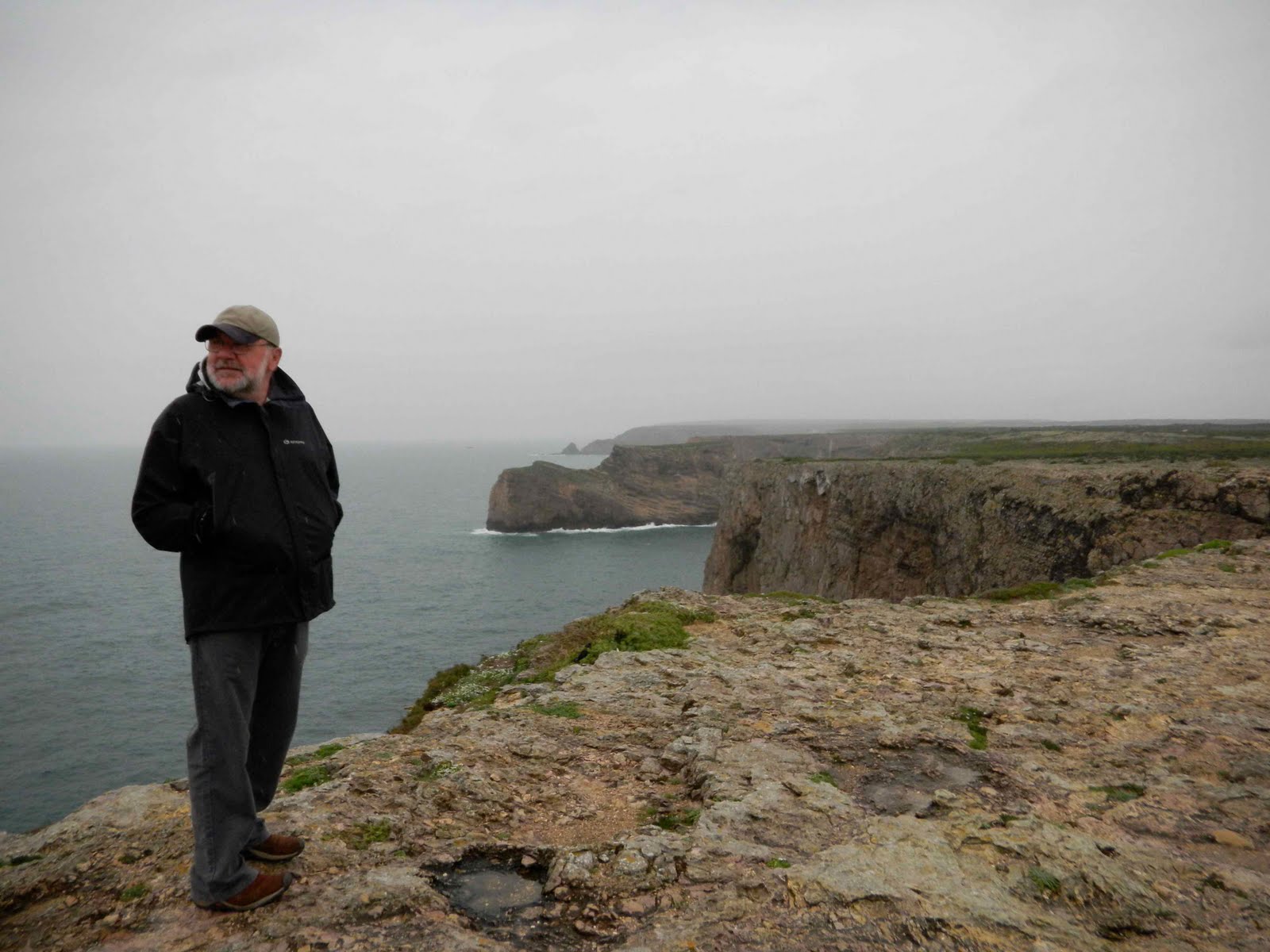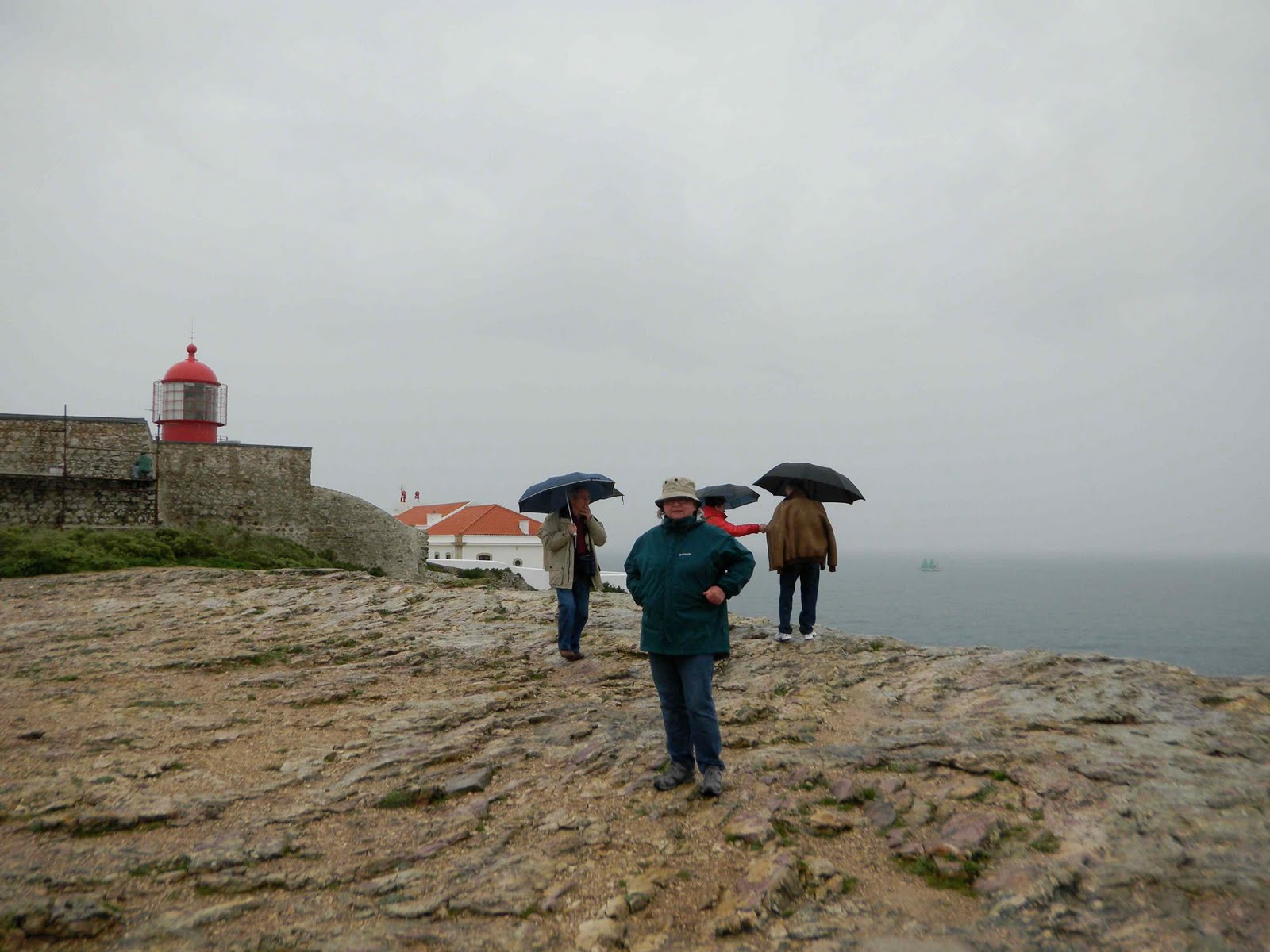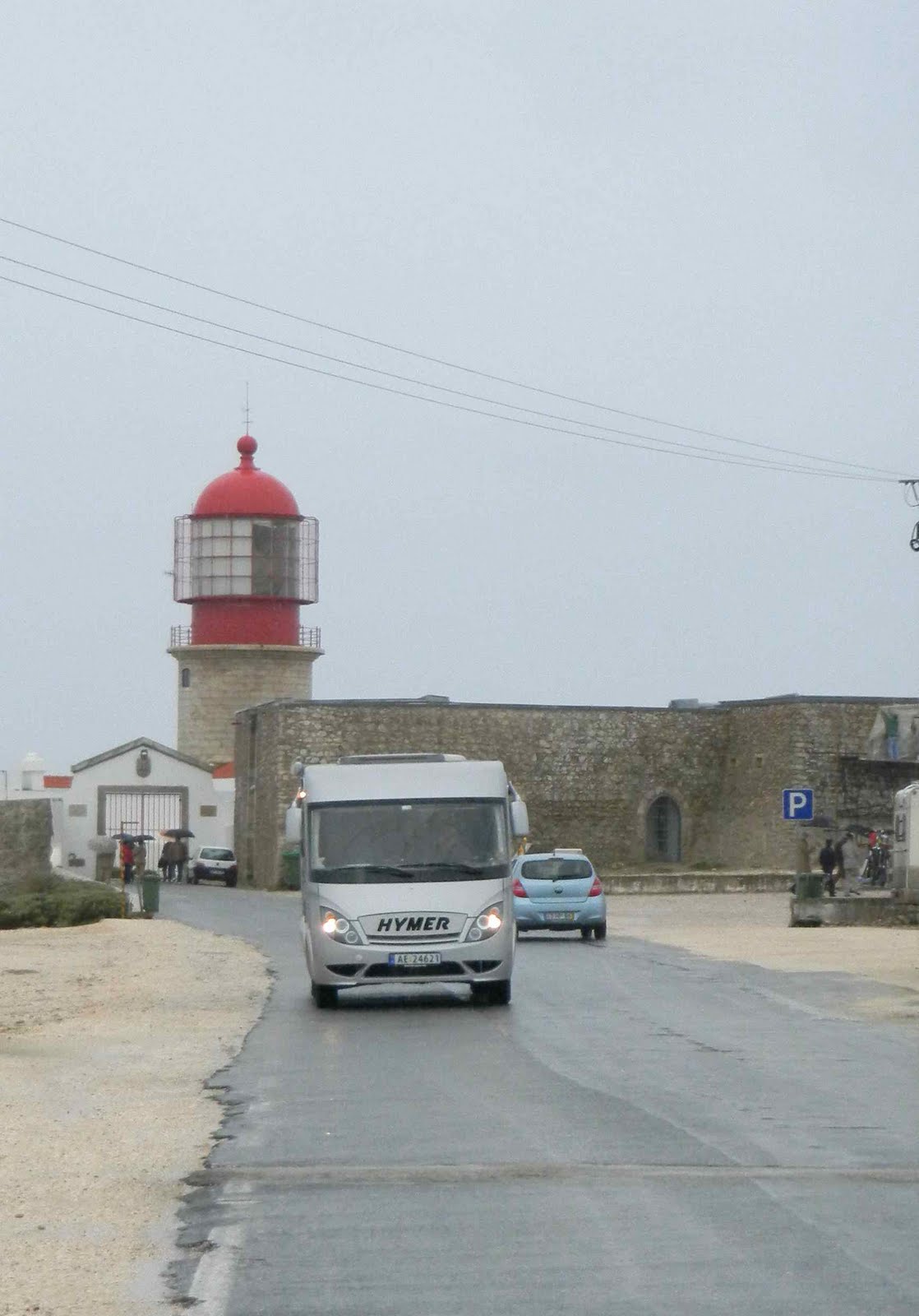 Spaserer inn til turistinformasjonen bare for å finne ut at de er stengt om mandagen ! Har gått forbi en litt hipp kafè som averterer med WI-FI så vi går tilbake til bilen og lemper inn bikkjene og tar Mac’en med på kafèen. Kjøper deilig wienerbrød og kaffe latte. For så å finne ut at du må bruke stedets egen computer og det koster € 0,14 minuttet ! Det gidder vi ikke. Så da drar vi ut til Cap St. Vincent omtrent bare for å ta bilde og registrere at vi har vært der. Det regner og regner.