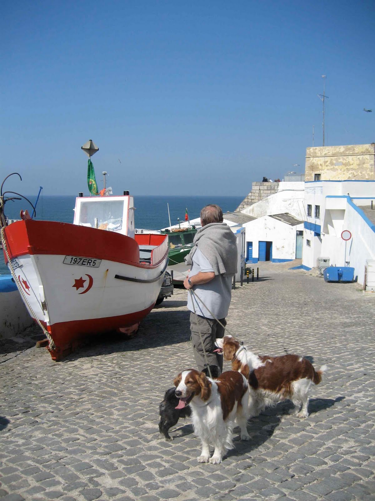 Det er strålende sol men kaldt da vi våkner. Da er det greit å skru på gassvarmen og krype tilbake i køyen med en kopp te. Når vi da står opp er vognen deilig og varm og det er varmt vann i springen. Spaserer inn til byen med småpikene. Der oppdager vi at det var bare halve byen vi så i går, nå kommer vi inn i idylliske små smau med butikker og kafèer uten at det virker altfor turistaktig. Dette er en litt ”in” by tror vi, mange week-end mennesker fra Lisboa tror vi, veldig mange unge tynne brune mennesker som jogger forbi oss i tettsittende lycra. Vi skulle nok jogget litt vi også, Fedon er helt gått i glemmeboken, det blir veldig mye baguetter og fantastiske portugisiske tebrød/kaker. Vanskelig å holde seg i skinnet og bare ha formiddagskaffe uten ”noget attåt” Portugisisk vin har vi også endelig fått dreisen på – det er bare å unngå de aller billigste merkene og slå på stortrommen å kjøpe en flaske til sånn 4-5 €.