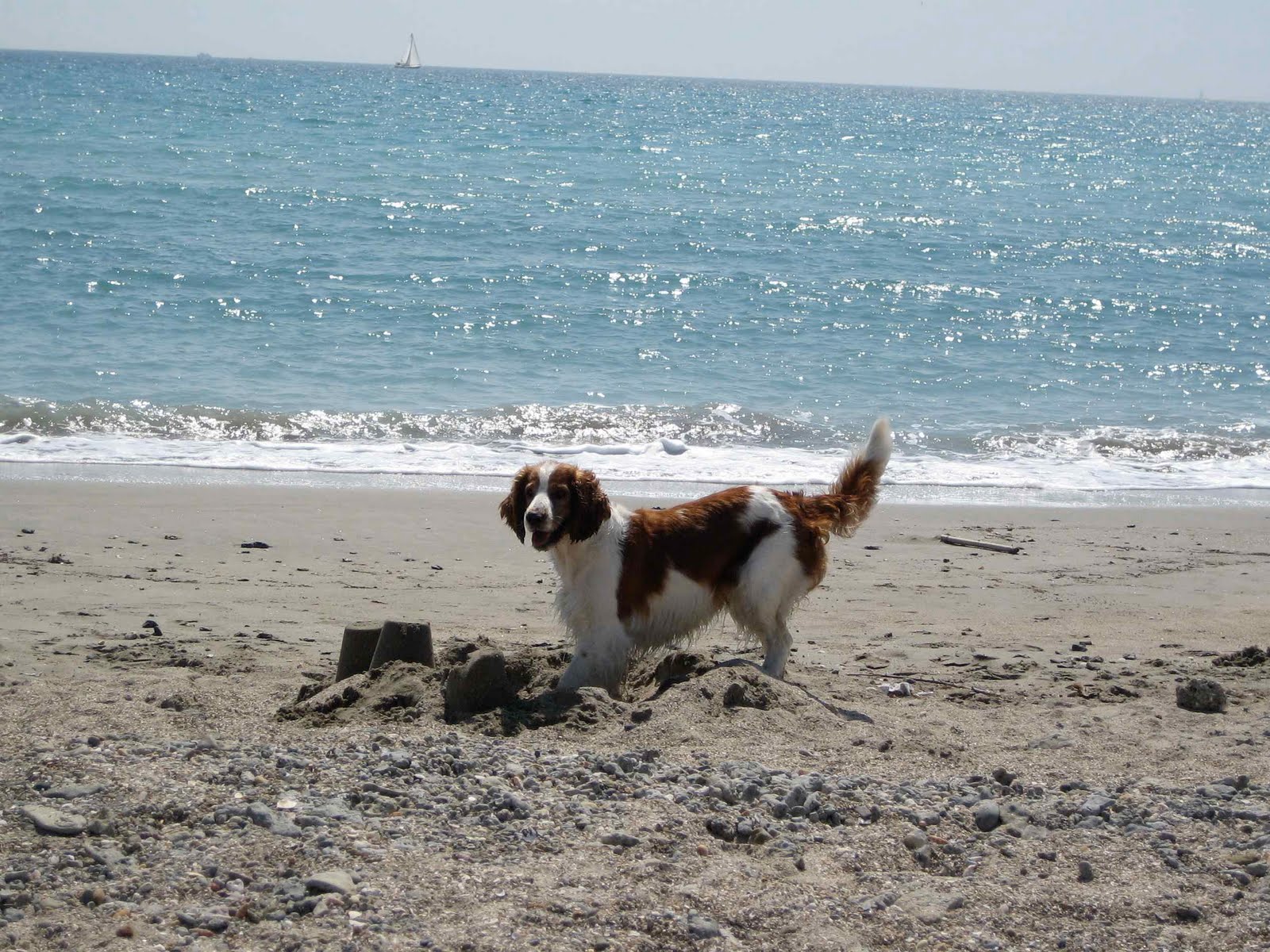 Ikke mye å berette i dag nei. Drar oss i sengen og ser frokost-tv fra BBC– det er jo så mye styr med vulkan asken fra Island nå. Alle flyplasser i England er stengt. Sånn er det jo greit å være bobil-turist ! Bare vi får plass på fergen i slutten av måneden når vi har tenkt oss til England, der er visst ganske ville tilstander i Calais for øyeblikket. Her er det de helt enkle ting som opptar oss, tur med hundene på stranden, se Pegi rasere et sandslott, soling på terrassen, et glass hvitvin og surfing på camping-cafèen, det har hopet seg opp med regninger men fikk nå fornyet lotto-en for nye 10 uker så det er håp i hengende snøre. Nå er endelig været slik vi i vår naive verden forventet at det skulle være hele tiden ! Vi hadde nok altfor store forhåpninger til været i syden om vinteren, men når det er sagt så sier de jo alle steder vi kommer at dette har vært verste vinteren i manns minne. Men nå er alt glemt, to par brune legger er alt som skal til !