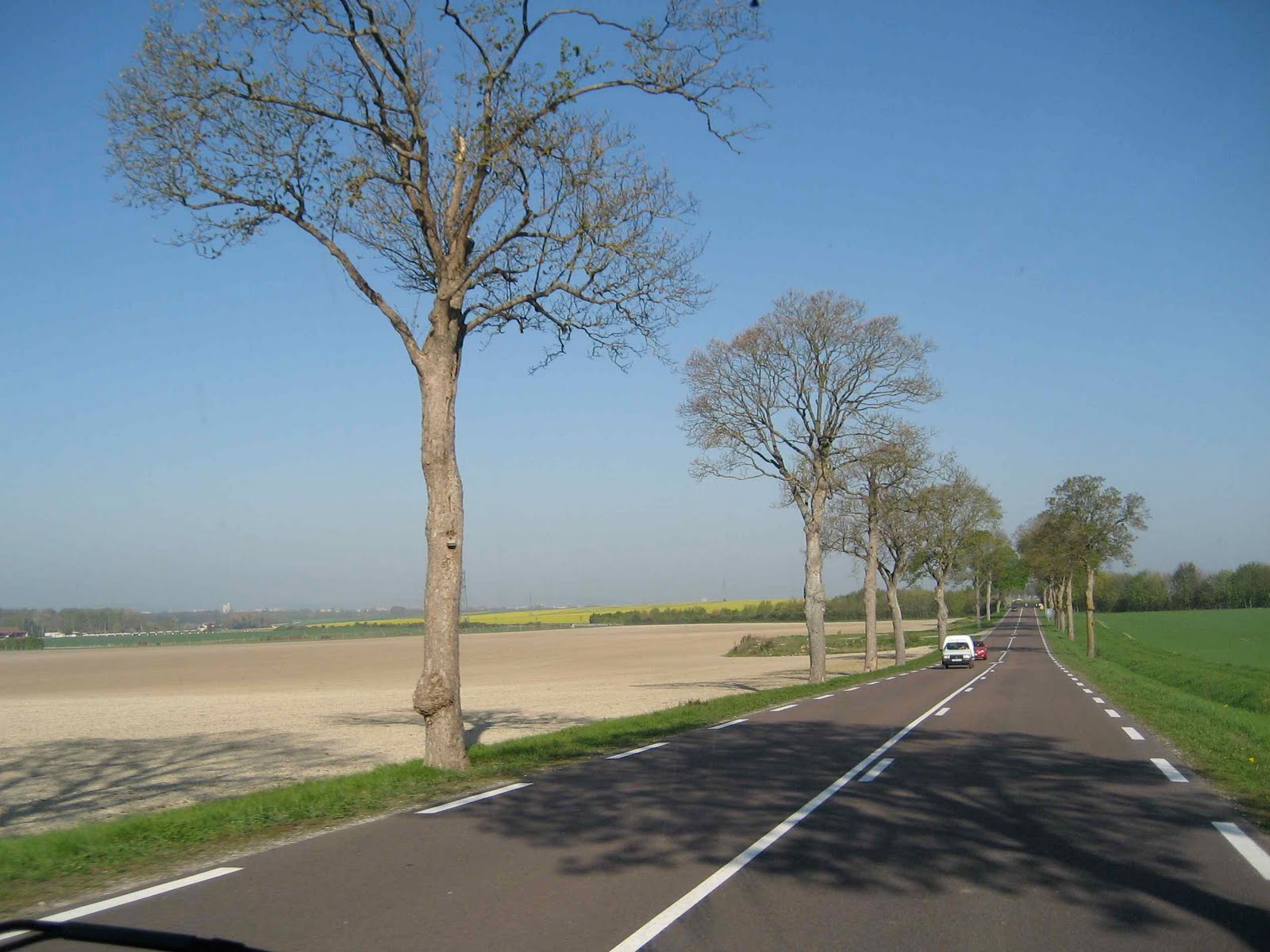 Våkner til frost !!!!! på takluken i dag. Vi er sannelig kommet til Nord-Europa ja. Det er lørdag og stille på veien så de 4 timene vi har igjen til Calais er riktig fredelig og behagelig. Vi har god margin og kommer til Calais 2 timer før innsjekking, så vi parkerer på den store plassen ved havnen midt i byen og har lunsj og går tur med hundene. Det er deilig sol men selvfølgelig kaldere enn vi har blitt vant med i det siste. Vi fikk bestilt billett i går på internett og det gikk helt greit, vi hadde vært litt engstelig at vi ikke skulle få plass, de sier på nyhetene at de fremdeles frakter etterslepet etter vulkan stengingen på fergene fra Frankrike. Vi trodde først vi hadde fått veldig billig billett – €68 – men da var ikke hundene inkludert – og de var €15 pr stk. Hundene får ikke komme opp på fergen, de må ligge i bilen så det du betaler for er all kontrollen som ferge selskapet må foreta før du får komme ombord. Som vanlig var det noen nervepirrende minutter før vi fant microchipsen til Pegi, nå var den havnet nesten i pannen. Så fikk vi nå endelig kjøre ombord i Pride Of Burgundy, ikke så mye å være stolt av i grunnen, Ray erklærte den som en gammel holk så Mona var glad sjøen var blank og stille og vi hadde en nydelig overfart. Kom til campingplassen i Chertsey tidlig på kvelden og fikk akkurat tid til en liten svipptur med