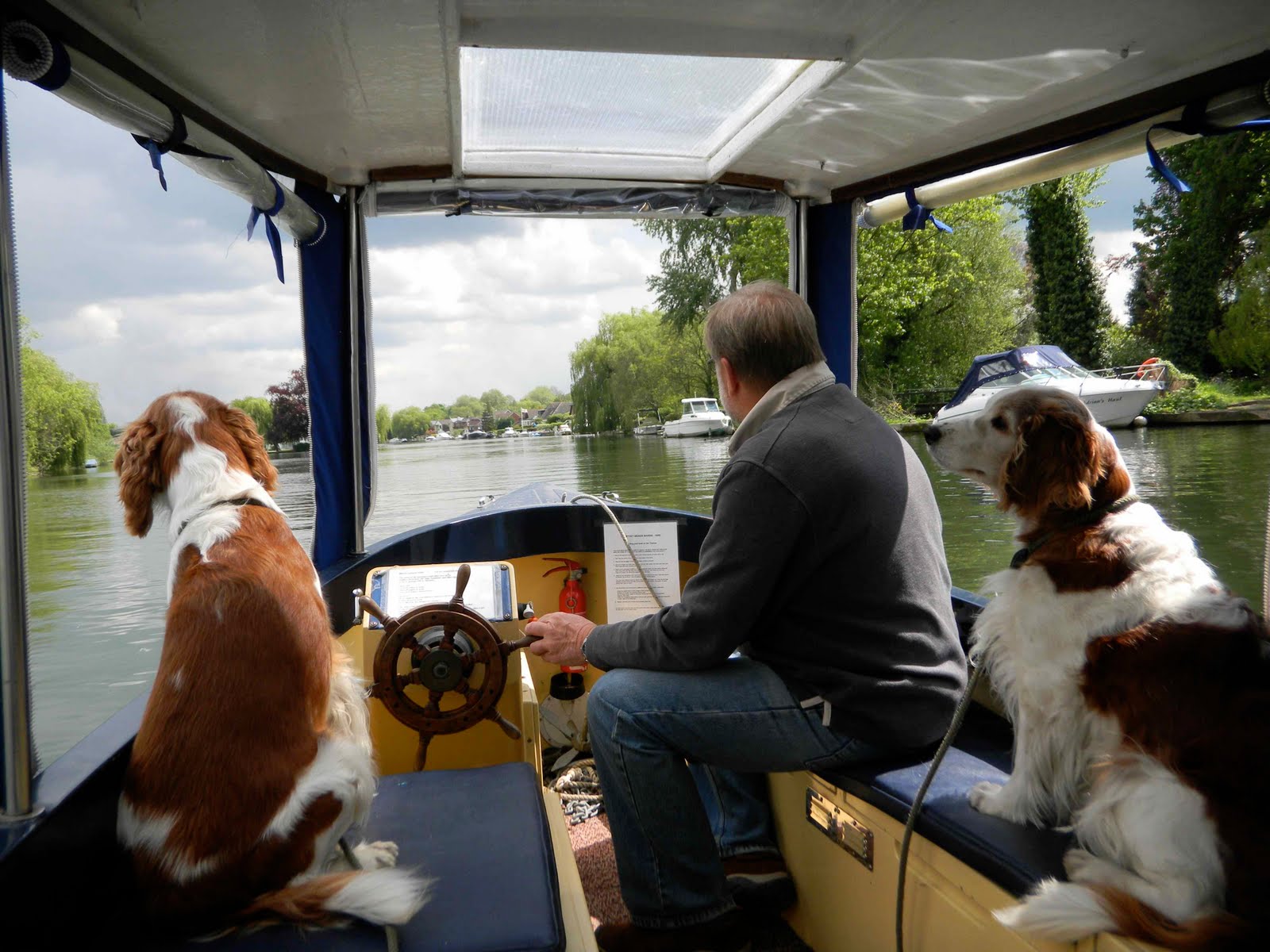 Dette er våre siste dager her og vi runder av oppholdet med en tur i en leiet liten båt på Themsen. Vi hadde studert vær meldingen og hadde tatt sjansen på å bestille en åpen båt. Vi hadde noenlunde vær, men det var kaldt og bare delvis sol. Først dro vi nedover elven til Walton og da måtte vi gjennom Shep – perton Locks. Det var jo litt spen nende. Først inn i slusen og så ble vannet tappet ut og vi var da på nivå med neste strekning i elven før porten åpnet og vi kunne tøffe ut. Så var det repetisjon på vei oppover igjen. Vi hadde også en lett lunsj på pub ved vannkanten i Shepperton. Så tøffet vi oppover elven og gikk gjennom ”vår egen” sluse her i Chertsey. Hundene koste seg, men vi måtte av og til holde godt i båndet når endene kom litt for nærmt for Pegi. Båten var elektrisk og helt stille så det var vel derfor de kom så nær. Om kvelden leverte vi tilbake leiebilen og hadde middag på kina-restaurant.