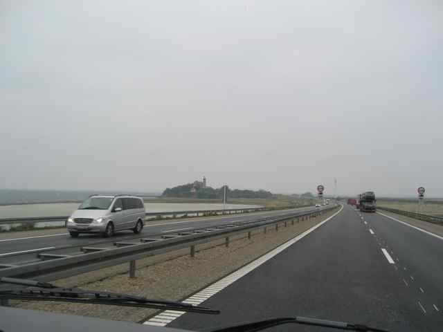Det blåser friskt da vi våkner om morgenen. Hvite topper i Øresund. Vinden er så kald at Mona må tulle hodet inn i den rene hijab’en når hun skal ut med hundene. Det er nå lov for dem å løpe løs på stranden så de får tatt seg litt ut der. Treffer turens første beundrer som må klappe dem og fortelle ”hvor de er smukke”. Etter sen frokost og en mildt sagt lengre diskusjon (kall det hva du vil) får Mona trumfet igjennom fergeløs tur til Tyskland – altså over Storebælt broen . Så åpner resepsjonen og vi får endelig dusjet og når vi er så ren og pen MÅ vi bare støvsuge vognen og børste hundene – Lili røyter som bare juling. Så klokken blir 12 før vi endelig kommer oss av gårde. Det er fine motorveier og flott tur over broen selv om det blåser. Ikke lenge etter ruller vi over grensen i Flensburg der vi stopper på handlesenteret for å undersøke trådløst internett men det de hadde kunne bare brukes i Tyskland så det var ikke aktuelt. Så det bærer videre. Passerer Hamburg som alltid er en flaskehals men det glir fint i dag klokken er 6 og rushet er over. Men noe som ikke er over er veiarbeidet på motorveien mot Bremen. Det står i stampe flere steder. Så klokken 20.30 har vi fått nok og finner oss en stellplatz i byen Sittessen, flott gratis plass ved en park og en mølle. Går en liten tur med hundene i byens hovedgate og får beundrere her også – nå er det ”zwei feine hunde” det går i. Tar en tidlig kveld og sovner til lyden av elven og vannmøllen. Det er merkbart varmere her enn i Danmark.
