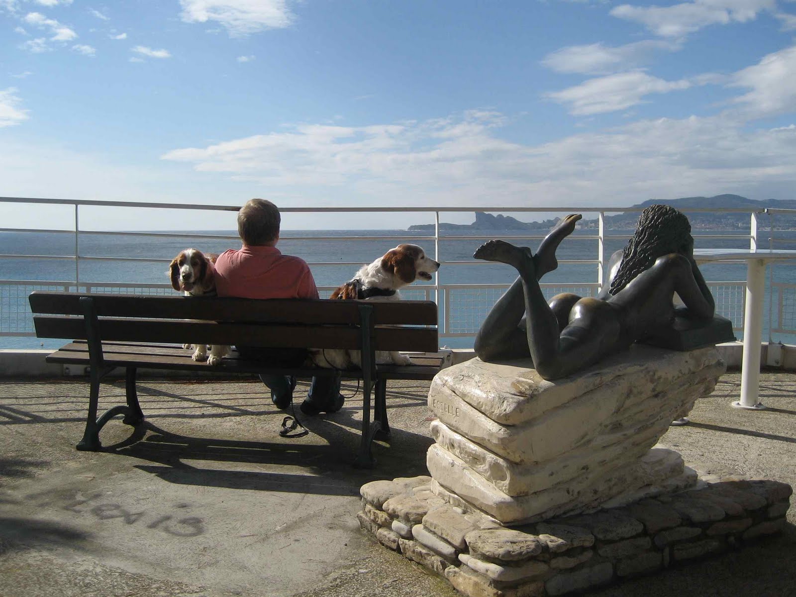 Hundene er tydelig trett når vi kommer tilbake, Pegi er liksom ikke helt tilbake til normalen etter at hun hadde Borelia, har nettopp avsluttet antibiotikakuren. Nå får hun nå deilig fransk hundemat – spesielt er Pedigree populært – sikkert på grunn av det fine bildet utenpå boksen ! Mat skal vi også ha så om kvelden spaserer vi ut til restaurant Le Girellier, ser koselig ut og er den eneste som er åpen ! Har nok en gang glemt ordboken igjen i vognen så menyen blir en utfordring ja. Ray spiller safe og tar entrecote, Mona velger en ukjent fisk og håper det er fisk og ikke kråkebolle ! I tillegg klarer vi å bestille en halv flaske vin, en kopp kaffe og en creme brulee. Det ble € 60 med tips så dette er ikke noe vi kan gjøre hver dag. Campingplassen er ikke spesielt billig heller – € 28. Men vil du være på rivieraen må du bare bla opp.