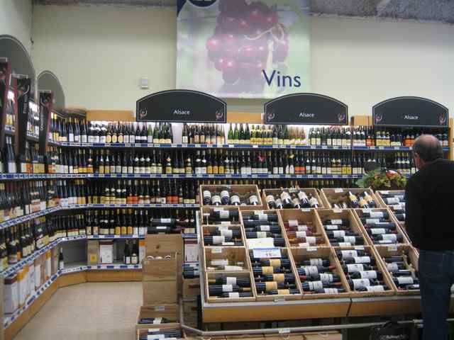 I tillegg er det overskyet. Vi minner da oss selv på hva som skulle være det primære målet med denne ferien – nemlig sol og varme. Så vi best – emmer oss for å forlate Alsacre (» drit i Alsacre » for å sitere Mona) og komme oss videre til neste distrikt som er Franche Comté – der vi tror det ikke er turister. Men først må vi bunkre og entrer frydefullt vårt første franske supermarked – en stor Leclerc utenfor Colmar. Her blir det ost og vin fra Alsacre slik at vi i kveld kan kose oss med en stor spesialitet her: ferske valnøtter og Riesling ! Kjøtt og ferske salat-ting og deilig brød naturligvis. Her har de alt, til og med levende krabber. Hvordan de får det til midt i det sentrale europa – milevis fra havet. Ikke rart det er fullt med trailere på veiene.