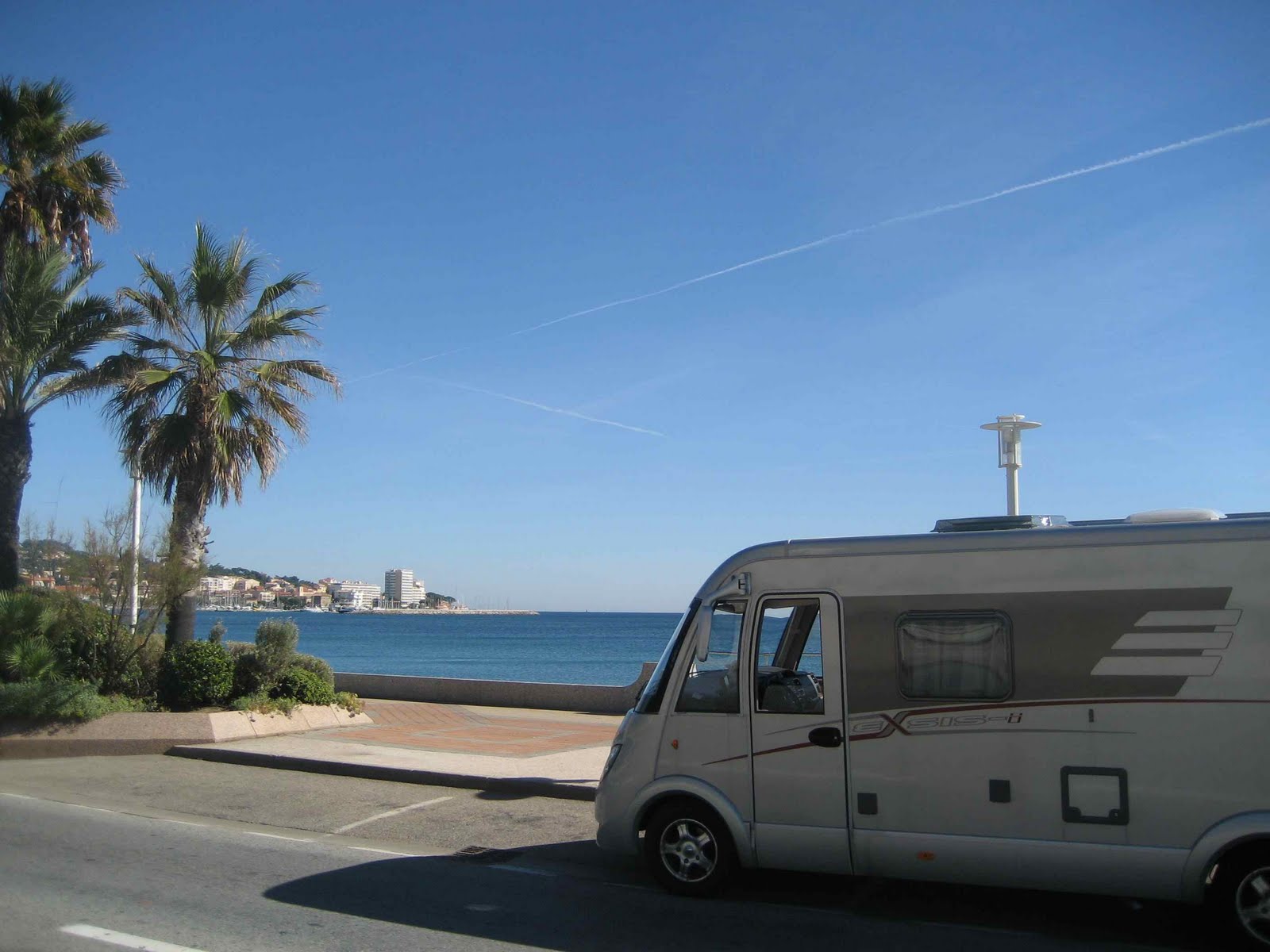 Så bar det videre langs rivieraen. Nydelig blått hav i dag, solen skinner fra skyfri himmel. Vi drar til en camping plass i Villeneuve – Loubet. Byen ligger 16 km fra Nice og 4 km fra Antibes og er i nyere tid mest berømt for sitt landemerke : 3 store bolig blokker formet som et seil.