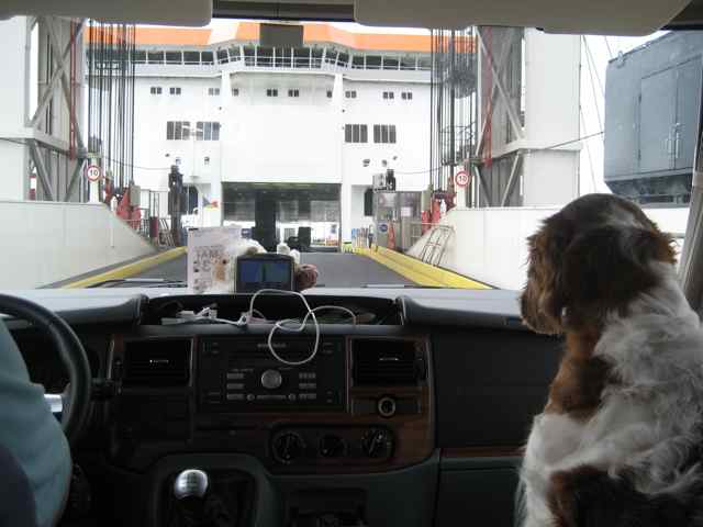 Tar det med ro om morgenen. Fint vær og går tur med hundene langs kanalen – her vokser det ville gule iris – virkelig nydelig. Så er det ut på mer motorvei-moro. Det er bare å trø til – suser gjennom Holland og inn i Belgia. Ikke spesielt moro rundt Antwerpen – fryktelig tett med trafikk og mange felt og høy fart. Men idet valmuene viser seg langs veikantene i Flanderen minker trafikken og vi kjører inn i Frankrike. Vi er 1,5 time for tidlig til innsjekking i Calais men denne gangen spør DE om vi ønsker en tidligere ferge. Det er naturligvis ikke oss imot så vi tar 16,30 i stedet for 18,00. Krysser den engelske kanal (som franskmennene kaller La Manche) i M/S Pride of Burgundy fra P & O. Ikke spesielt mye å være stolt av, kan trygt si at dette er en ferge av den eldre garde. Det er frisk bris men grei overfart, selv Mona er fornøyd. Det var sol i Calais så det var litt skuffende å komme til Dover i tåke og duskregn. Konsentrasjonen er på topp når vi kjører i land på venstre siden av veien, er glad vi bare skal til en campingplass i Folkestone første dagen – Black Horse Farm Campsite. Veldig fin – godt utstyrt med gressende kaniner. Pegi er helt på tuppa – Lili er lettere forvirret og vi er herlig avslappet over endelig å være fremme i England. Tenk vi har kjørt gjennom 5 land i dag ! Det feires med BBC på TV og tollfri Bushmill med mørk Toblerone – anbefalt av mannskapet på taxfreen på Pride of Burgundy.
