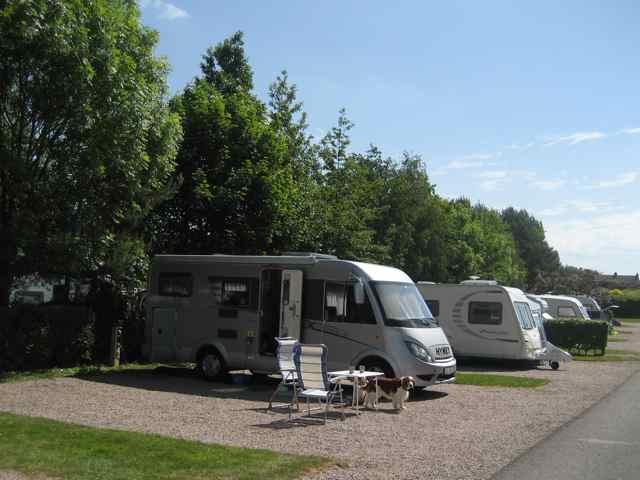 Sol og skyer i dag. Vel, første skyen kom ikke før Ray skiftet til shorts, så det var tydelig ingen god ide. Vi slapper litt av på ”ter – rassen”. Vi er på camping – plass tilhørende ”The Caravan Club” og de har alltid store fine plasser til den enkelte. Dette er plasser hvor det kun er rullende campingvogner og bobiler, ingen faste installasjoner. Her er heller aldri pub, diskotek eller svømmebasseng. Men flotte rene servicebygg og stille fredelige plasser hvor 75 % av gjestene er som oss: eldre/middelaldrende ektepar med hund/er. Våre 5 -6 nærmeste naboer denne gangen har et utvalg av raser: 1 cocker spaniel, 2 cavalierer, 1 labrador, 1 west highland terrier og 1 bearded collie. Omtrent som å være på hundeutstilling. Her er egen lufteplass for hundene ”Dog Walk” men gjerdet er bare 50 cm høyt så Mona tør ikke slippe Pegi løs. Tidligere i dag klarte hun nesten å få fatt i en stakkars liten kaninunge inni hekken.