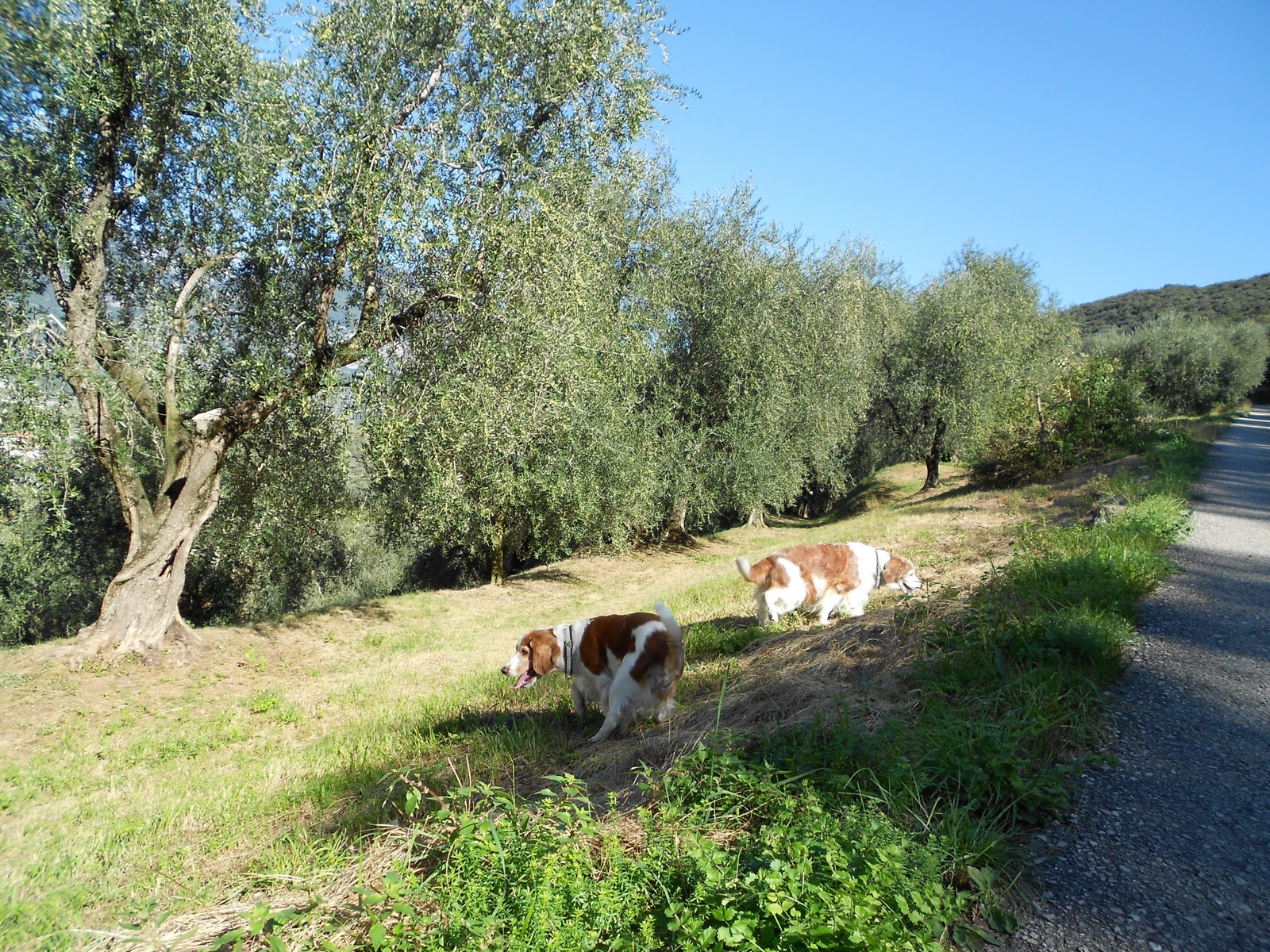 Etter frokost er det ikke mye fred å få fra de firbente, spesielt Pegi, hun presser på for TUR. Ettersom vi tok strandpromenaden i går tenker vi at vi går i høyden i dag, opp på fine stille veier langs olivenlundene som kler fjellsiden.