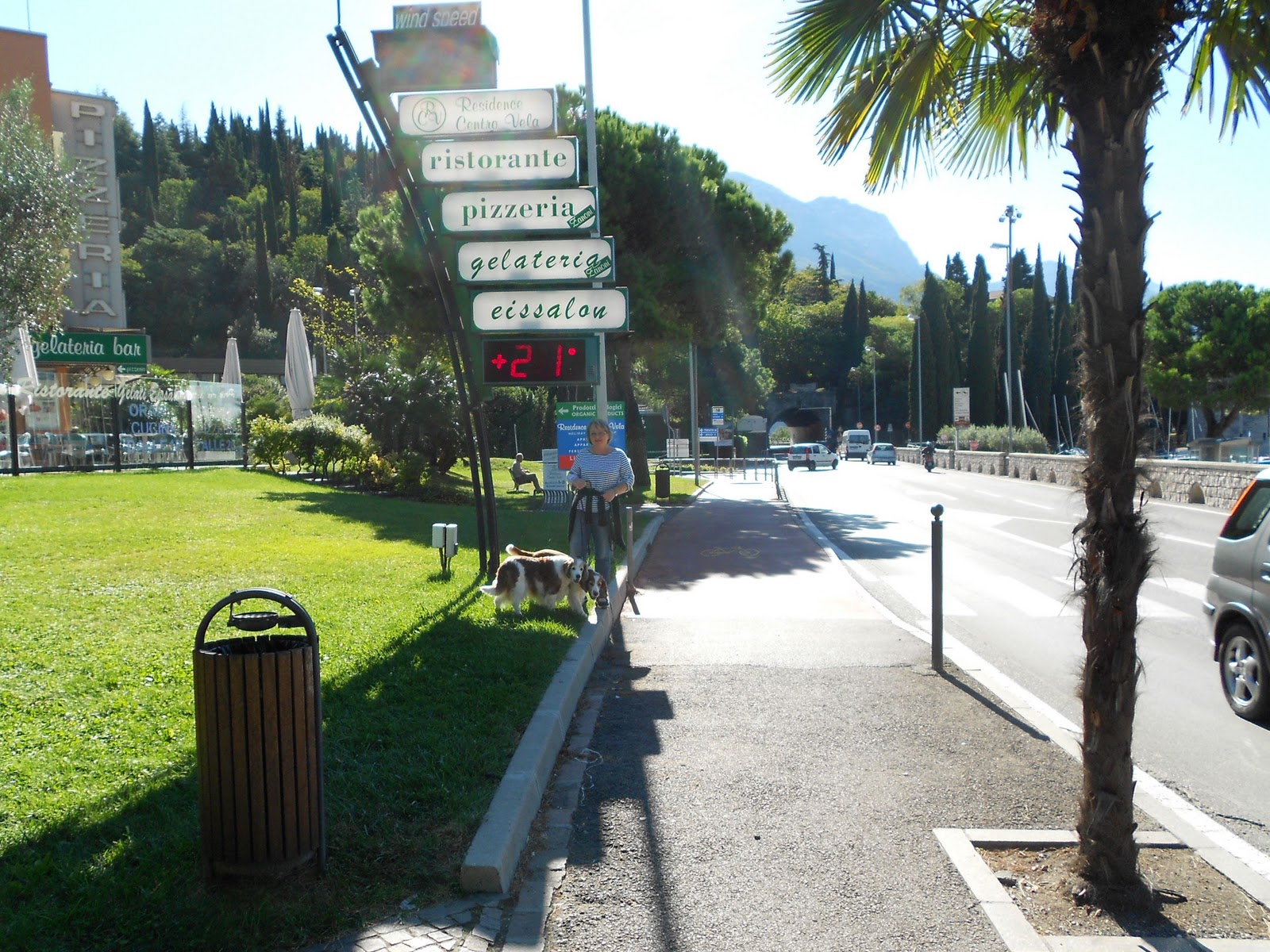 Tilbringer dagen med strikking og lesing i solen. Om kvelden går vi på pizzeria og har en helt vidunderlig pizza m/salat og italiensk vin og menyens minste iskrem (3 kuler). Litt pinlig da Ray skal betale og ikke husker koden på kortet. Da er det greit å kunne sende kjerringen tilbake til vognen for å hente SITT kort og selv sitte på restauranten og kose seg med et glass sitronlikør – på huset !