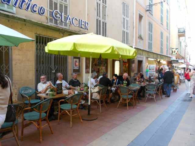 Går litt rundt og titter på promenaden og shopping gaten Rue St. Michel og der er det vi hører stammens hyl: Mamma – se de flottæ øræædobbææne ! Bergenske tenåringsbarn på høstferie. Sånn er det med direkterute til Nice. Du er aldri trygg. Og vi luller rundt i den tro at vi bestandig er de eneste norske hvor vi enn går.