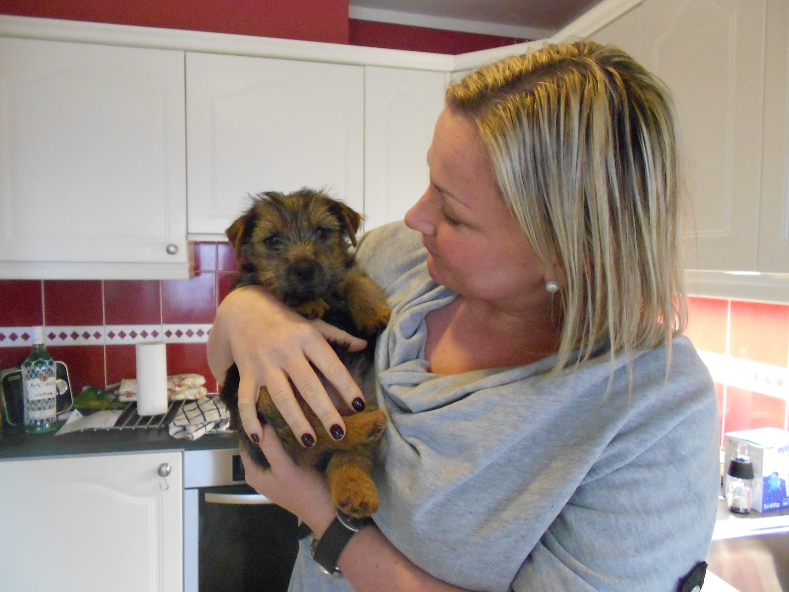 Selina kom på besøk for å beundre valpen og tok bilder og film som ble lagt ut på Facebook ! Siden ble det tur til dyrebutikken hvor vi kjøpte halsbånd og ny seng. Har du fått valp MÅ du bare bruke penger altså.