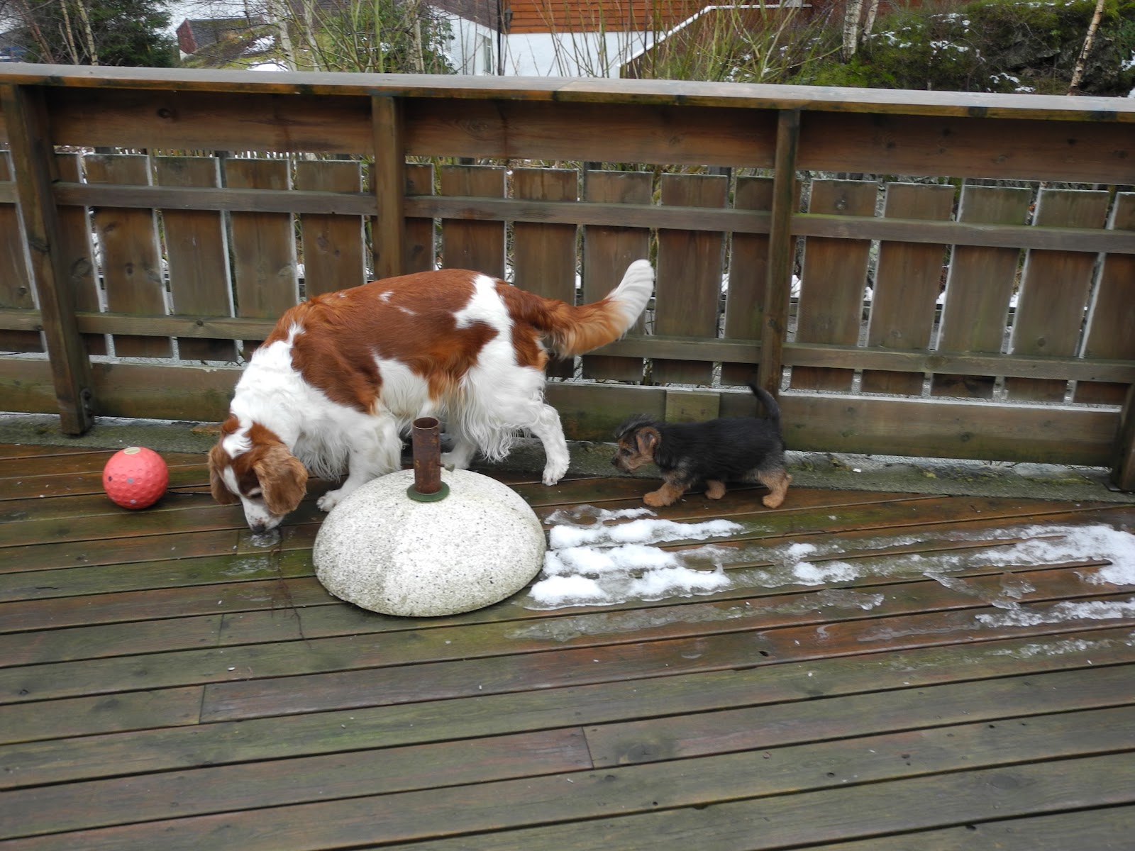 Siden ble det ommøblering av stuen hvor alle ledninger ble buret inn. Vi hadde allerede på forhånd valpesikret kjøkkenet. Nå har Maggie kjøkken, stue, hall og bad hvor hun kan løpe rundt uten at vi trenger å bekymre oss for om hun kan skade seg eller inventaret på noen måte.