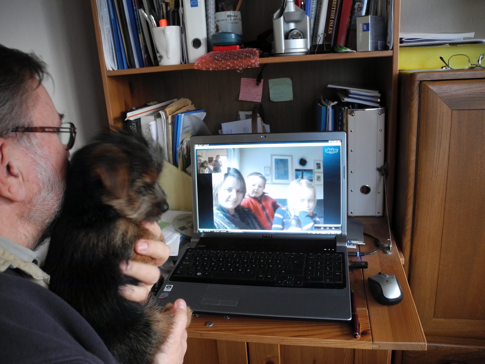 Så var det hjem til middag med Mona som hadde ankommet fra jobben og så ut igjen til kaffebesøk hos Suzanne og Lizzie (4) og Scott (2). De var litt redd valpen og det ble en del hyling men de roet seg nå og ting normaliserte seg. Maggie tok det så fint og vi oppdaget noe litt rørende: Pegi forsøkte å «skjerme» henne når ungene kom løpende.