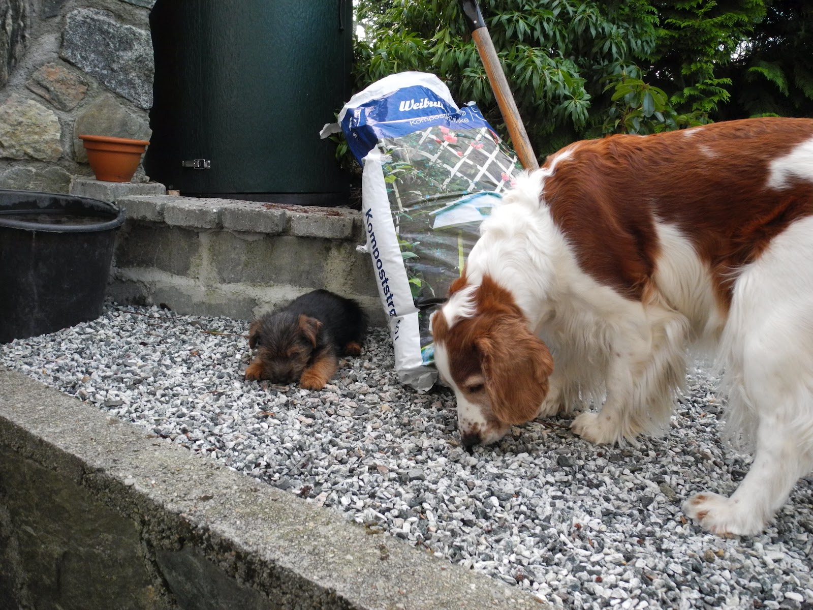 Småstein i hagen er veldig fristende, likeledes Pegi sin middag men egen mat er ikke interessant i det hele tatt.
