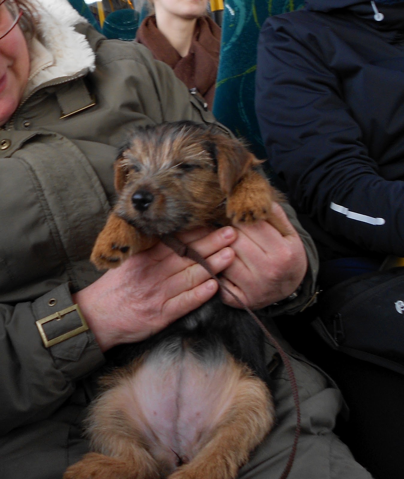 I dag var det forholdsvis mildt og tørt i været så vi fant ut at tiden var inne for Maggie sin første by-tur, kjekt å starte med en søndag. Mona og Maggie tok bussen inn til byen, så fikk hun trening på det også. Hun var litt skjelven de første 10 min men så slappet hun helt av og koste seg resten av turen.