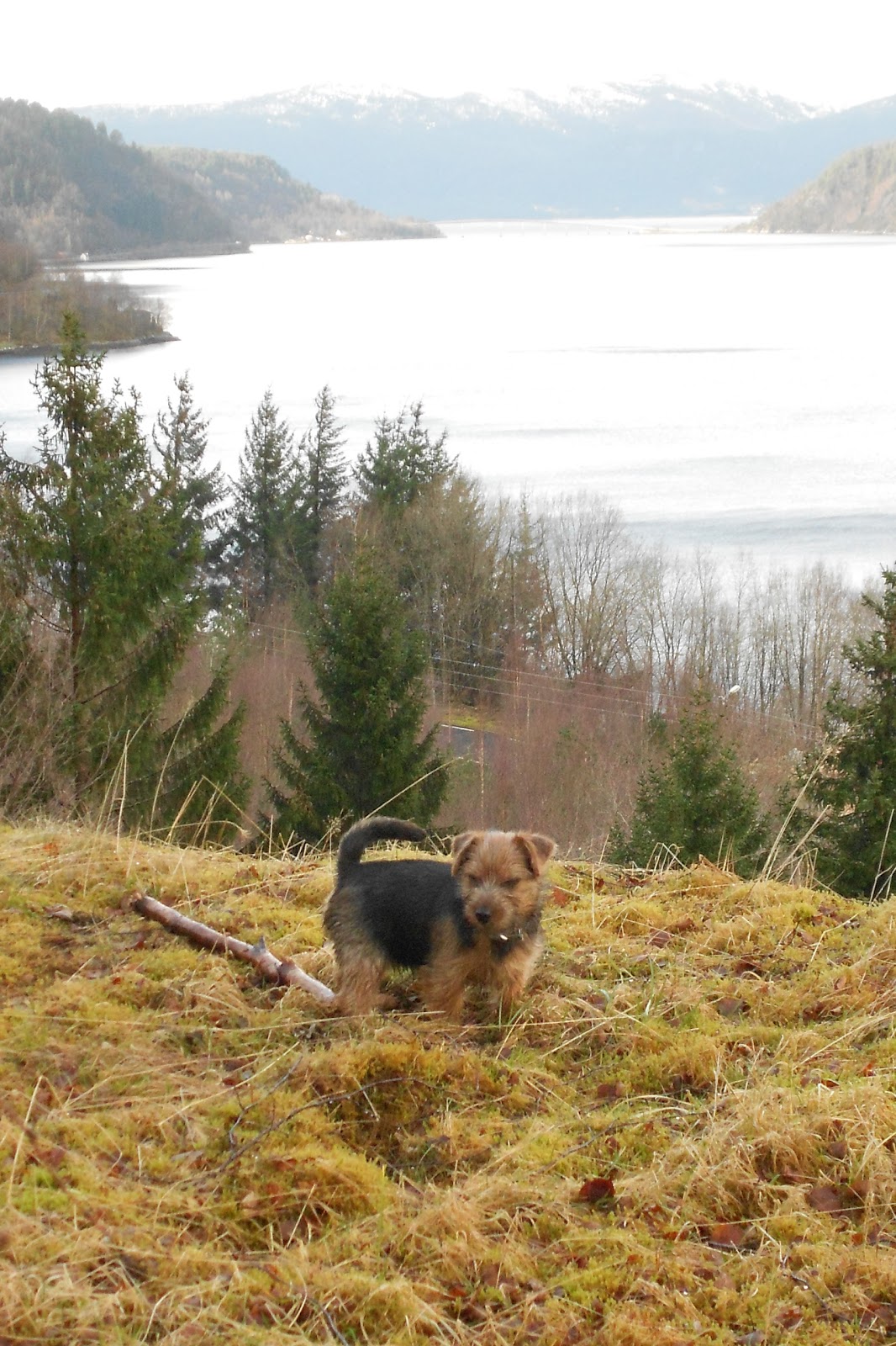Fjorden ligger det grå og trist under oss. Vi er ikke lenge ute i dag.