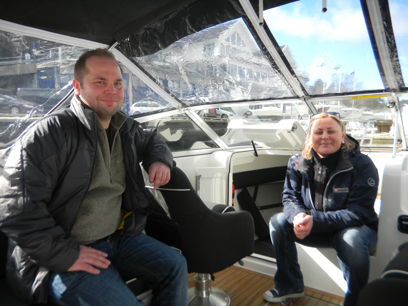 Stor dag for Fredrik og Selina som kunne hente ny båt i Dolviken og ta den på jomfrutur hjem til marinaen i Åstvedt. Været kunne vært både varmere og tørrere men det var ikke altfor gale. Turen gikk helt fint og rederparet koste seg.
