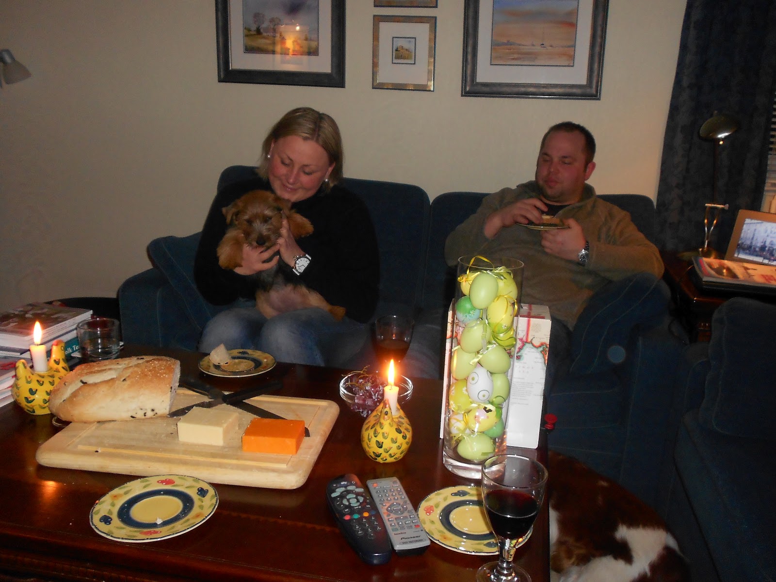 Dagen ble avsluttet med middag hos oss og mye kos for Maggie – hun er helt gal etter Fredrik – er det fordi han snakker svensk ?????????