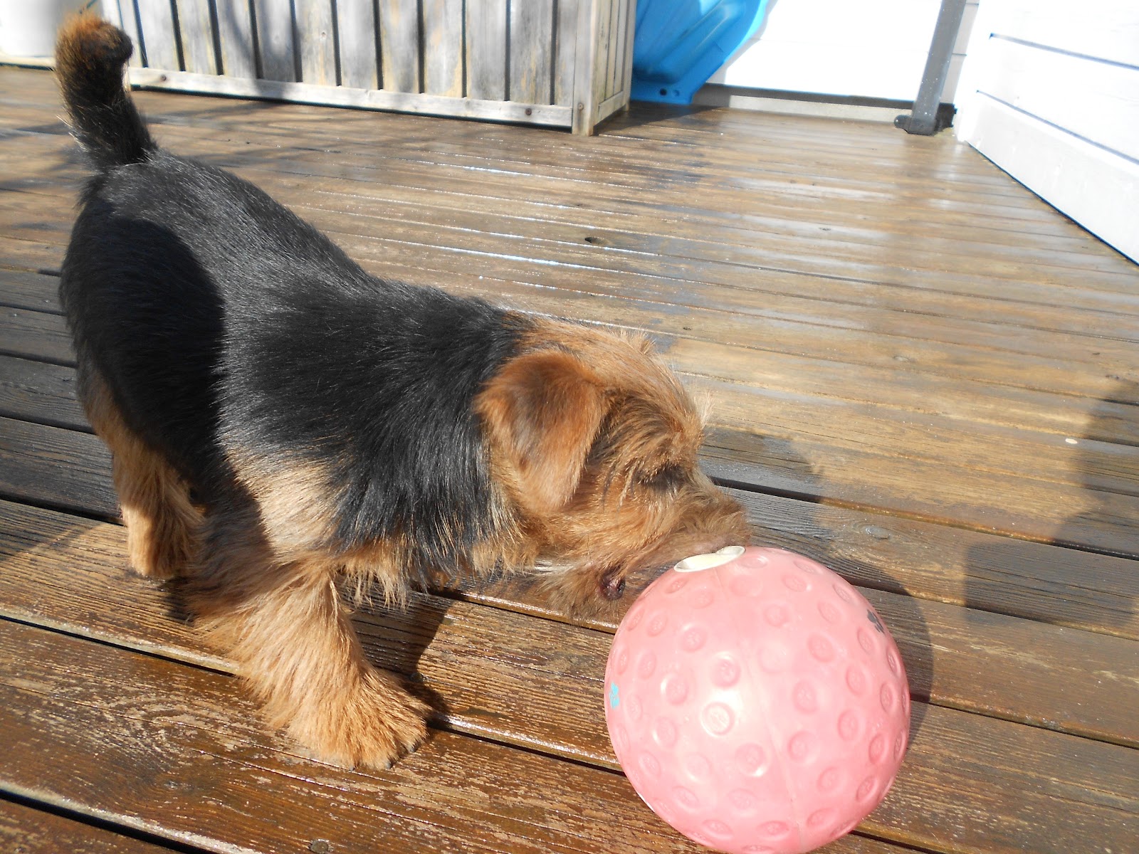 Men nå har den fått sin rennesanse. Maggie syntes den var alle tiders og holdt det gående i evigheter til alle kjedelige mat-kulen var utav ballen. Håper hun fortsatt vil leke med den – slik at den kan leve opp til reklamen den kom med : «Will give your puppy hours of endless fun ! «