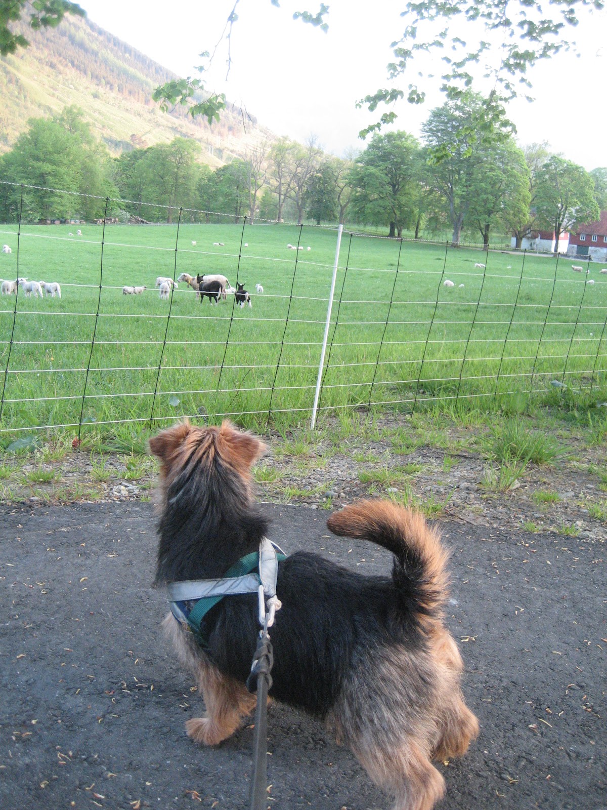 middag gikk vi tur opp til Baroniet og underveis fikk Maggie se sauer for