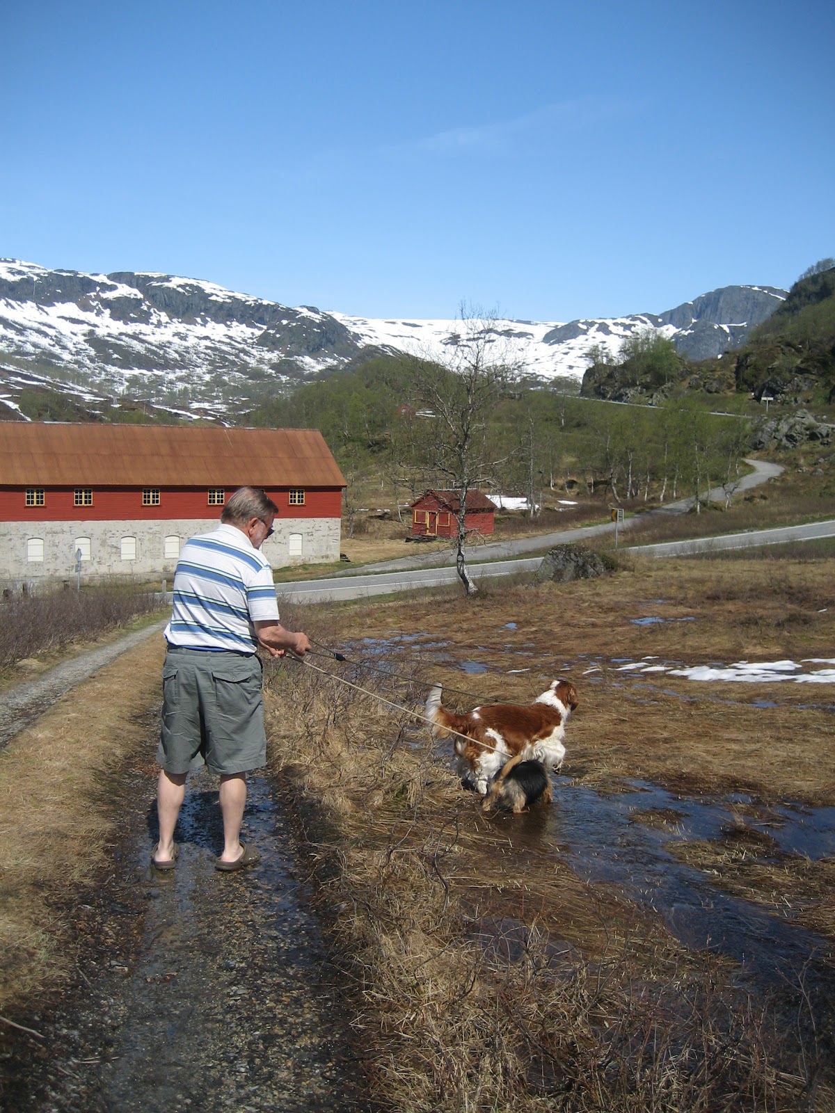 passert Røldal stoppet vi for å lufte hundene og de koste seg i snøflekkene.