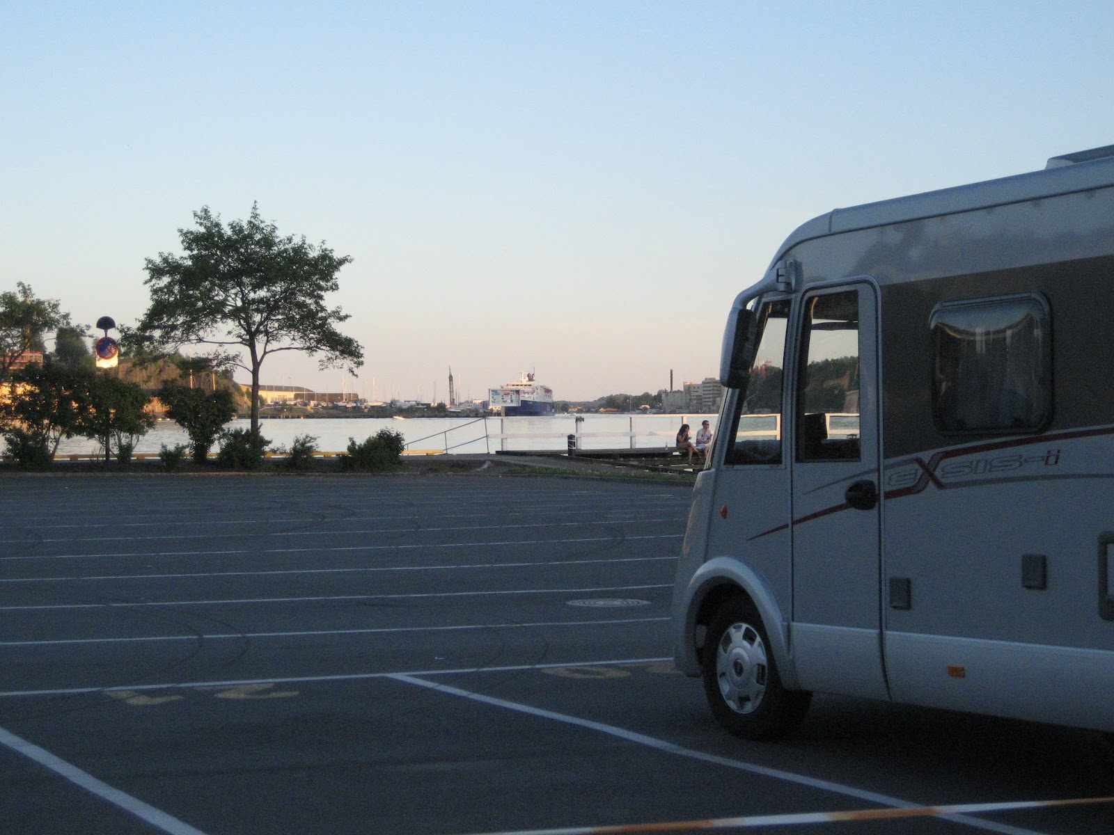 kaien til Color Line og parkerte der for natten. Nydelig utsikt over havnen og