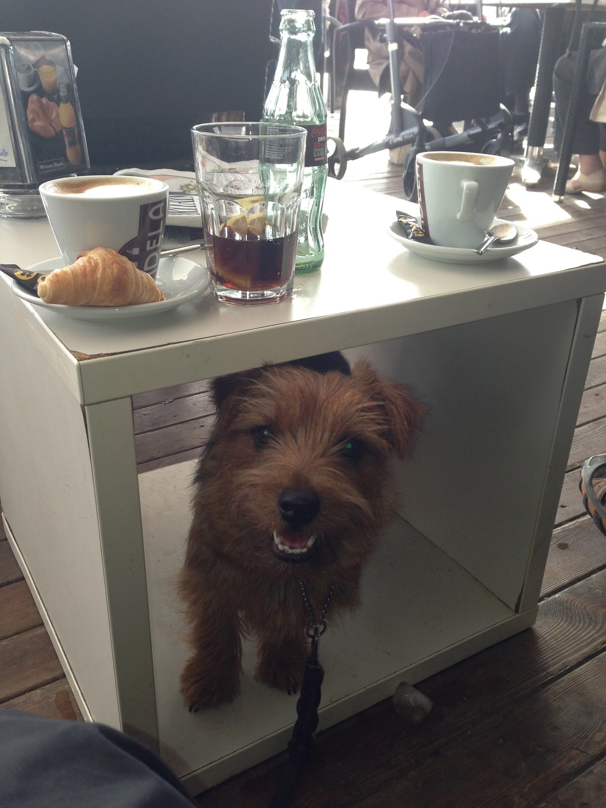 Ellers er jo kafèbesøk en ren fornøyelse også økonomisk. En kopp cappuchino (eller white coffee som de kaller det her på denne «engelske» kafèen) koster altså 1,40 euro. Blir det en 11-12 kr eller så ? Og da får du gratis croissant og lang tur på Maggie i tillegg. Slår isete fortau i Morvik det er sikkert.