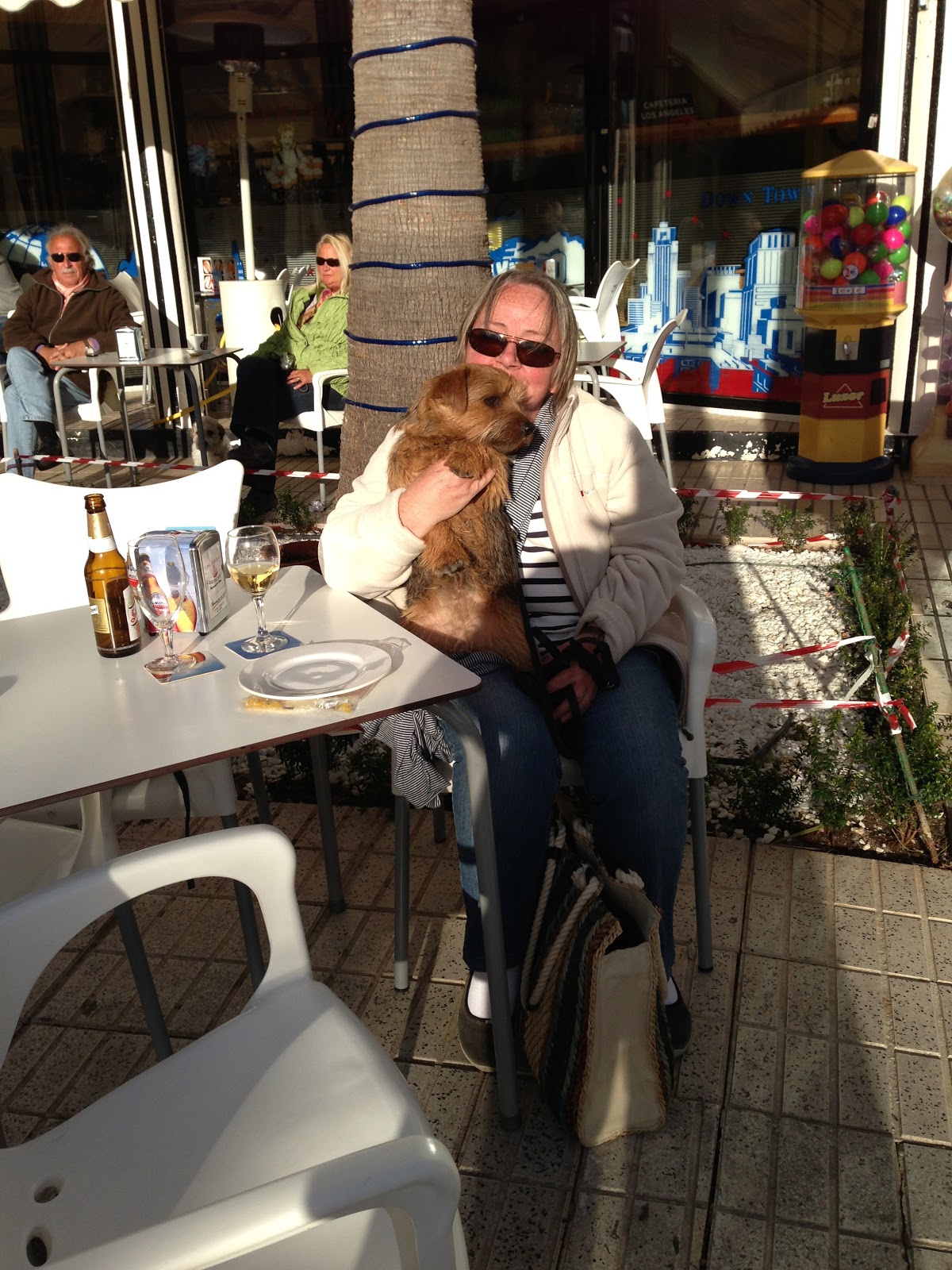 Da bussen kom tok Mona Maggie på armen og toget inn på bussen – men ble stoppet av bussjåføren som ropte – Perros NO !!! – det var jo ikke så vanskelig å forstå – litt spansk behersker vi jo -men det var likevel et sjokk – du får jo ha hunden med omtrent alle andre steder !