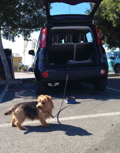 Vår lille tulle skulle bare visst hvor heldig hun er ! Trives godt bak i Panda’en !