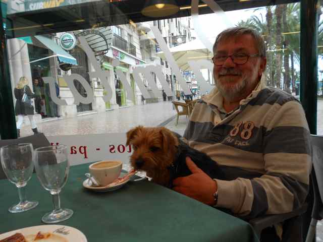 Tirsdag og litt overskyet i dag så vi tenker at da passer det bra med en storby-tur. Så vi tar Panda’en og suser avgårde til Alicante, det er ca. en halvtime å kjøre. Men før vi kommer så langt kommer vi over et Carrefour Planet kjøpesenter så da er det på med blinklysene og inn på parkeringsplassen. Vi trenger mat i dag og Mona stimer inn med handleliste mens Ray og Maggan venter i bilen med en kopp kaffe og en bolle.