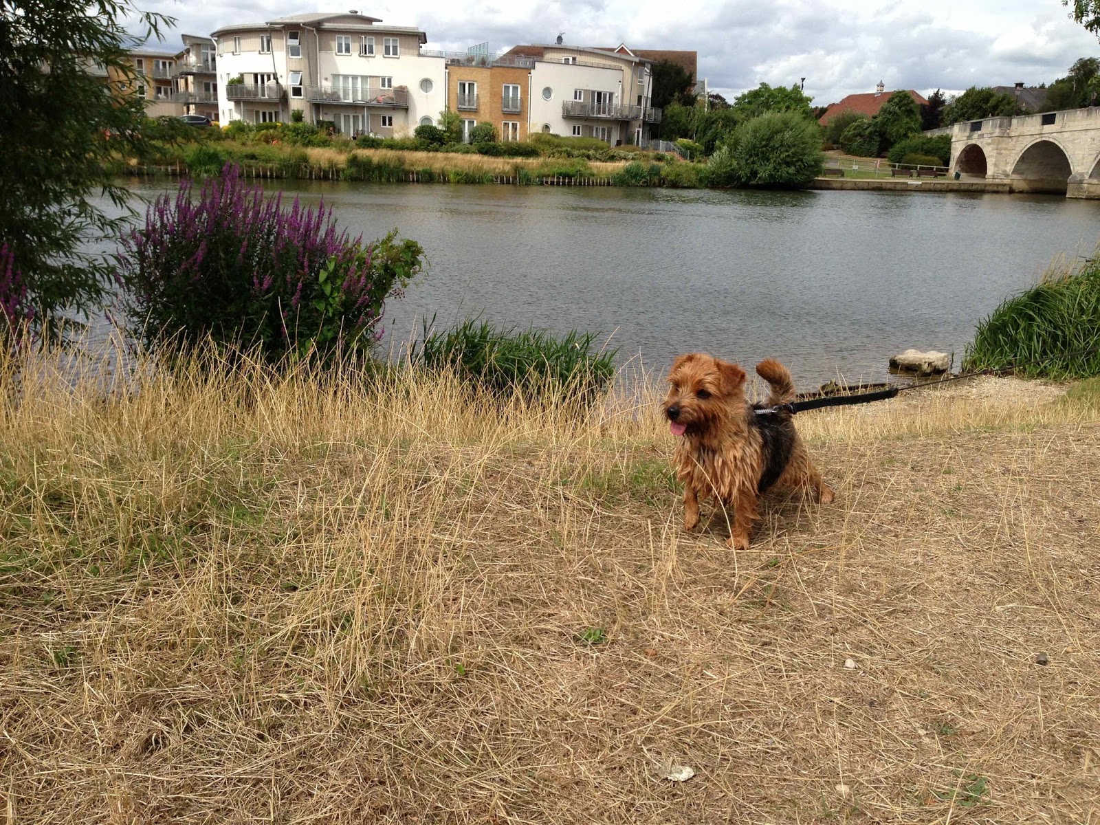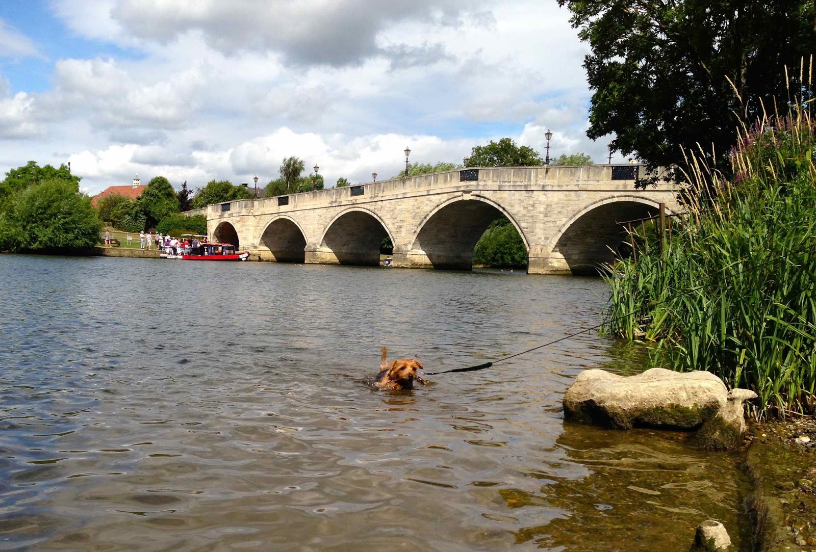 Nok en nydelig dag. Går tur langs Themsen og Maggie bader.