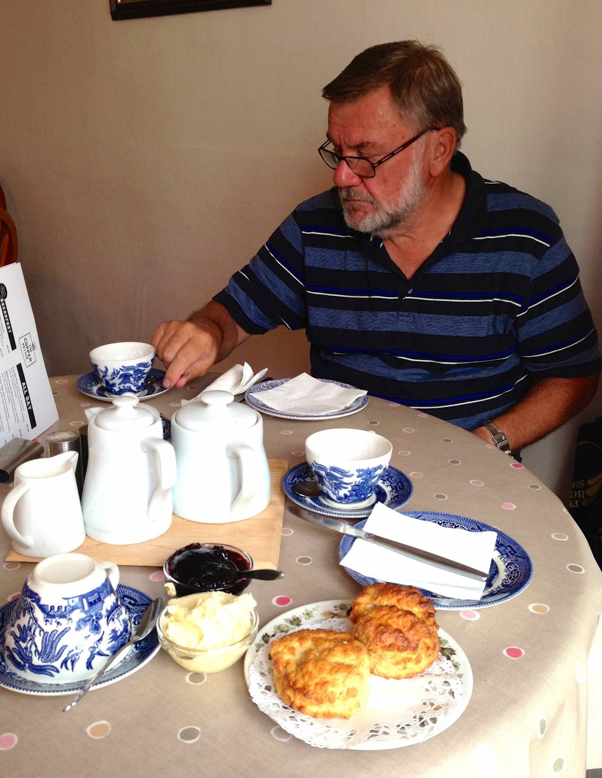 og syltetøy. Vet ikke helt hva clotted cream er på norsk, en blanding av