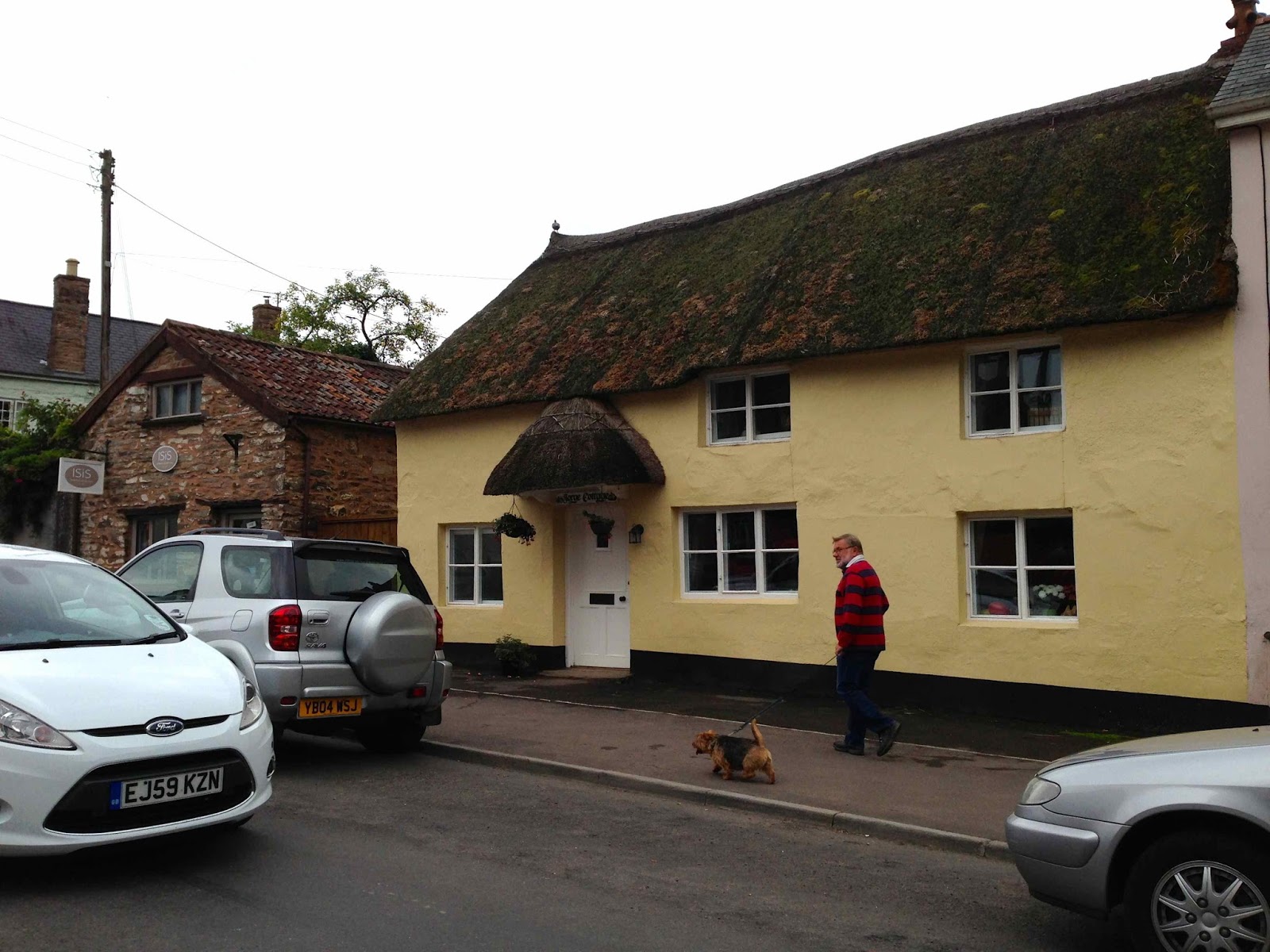 De har lenge truet med dårlig vær på værmeldingen og i dag ble det faktisk litt grått, men ikke storm og masse regn som vi hadde trodd vi skulle få. Denne dagen var igrunnen satt av til å vandre rundt i alle de små butikkene i Dulverton og snope litt her og der – bare vi to – ingen Maggie på slep – selv om denne byen er veldig hundevennlig. Har ikke sett noe lignende i England. Da vi hadde lunsj på puben i dag var det et ektepar på nabobordet som hadde 5 – fem – bikkjer liggende under bordet. Alle jack russel terriere av forskjellig hårlag.