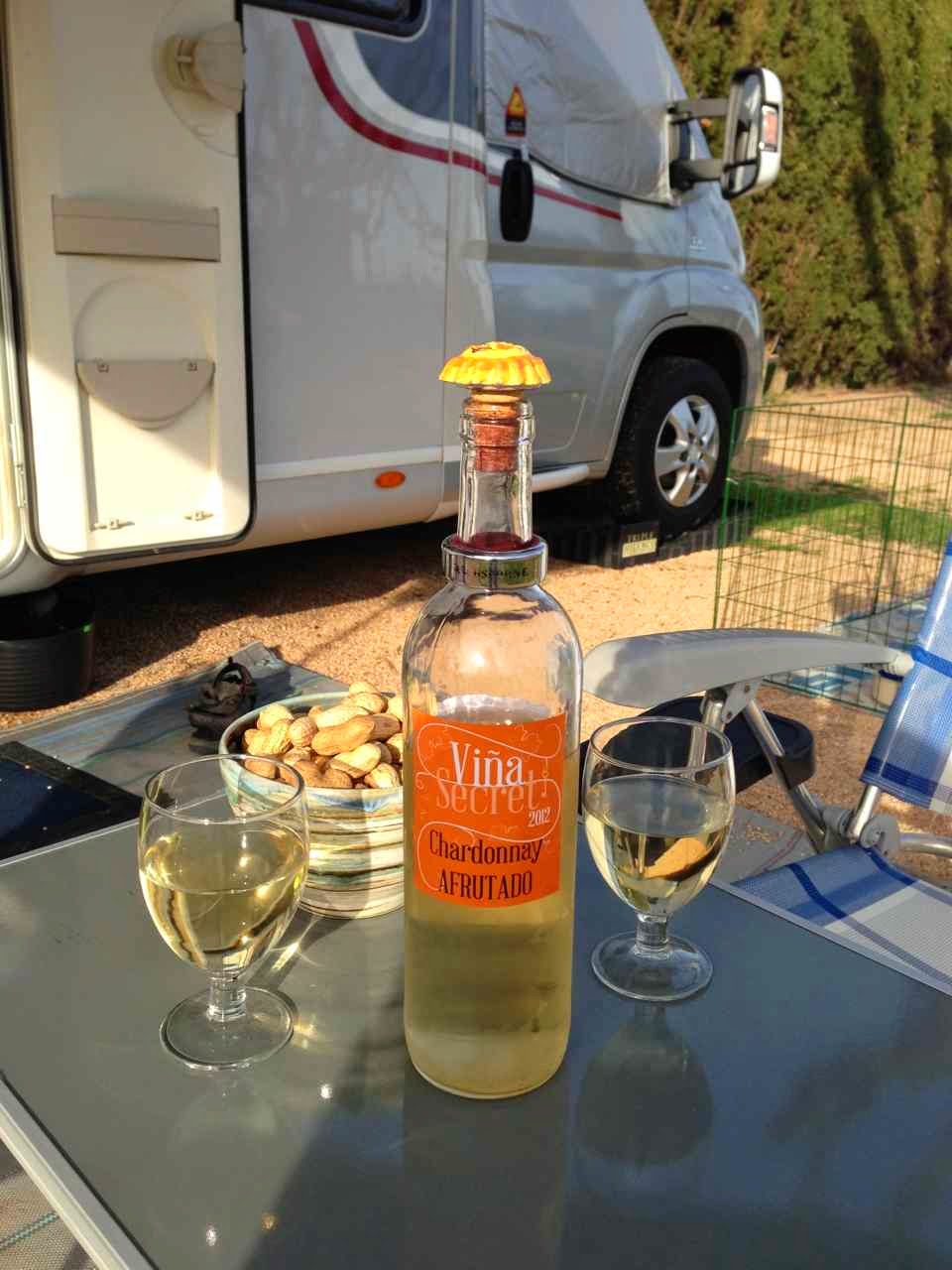 | Siste dag i Spania feires med spansk chardonney og litt «snacks» på terrassen. |