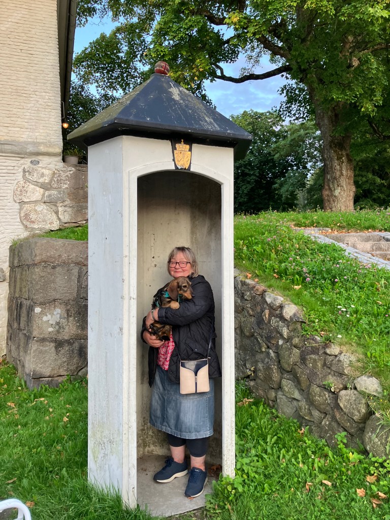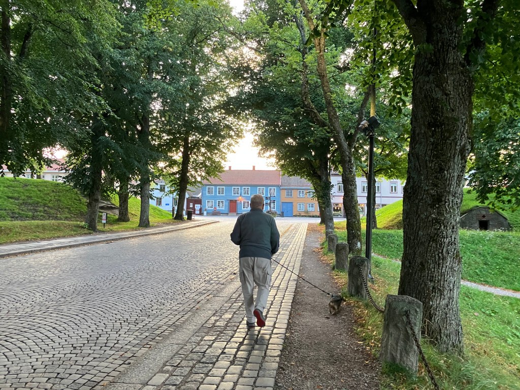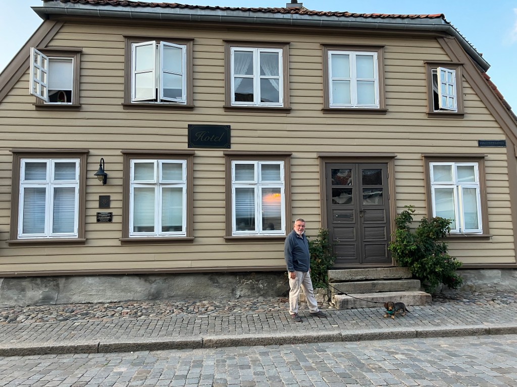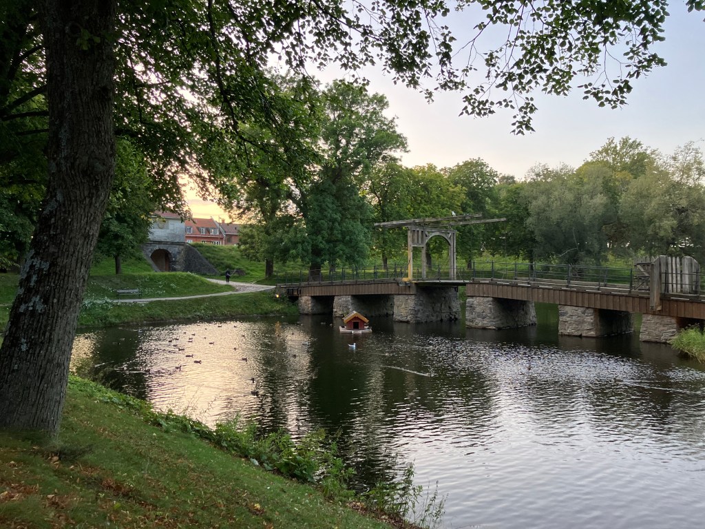 Etter middag tok vi (minus Maggie som nektet å være med) en tutletur ned til Gamlebyen før solen gikk ned, ja tenk vi fikk sol tilslutt i dag. Fin by med vollgrav og mange fine hus i pastellfarger. Dessverre var kafeer og butikker stengt. En del puber og kroer var åpen men far var trøtt i ryggen etter en lang dag og ville hjem. I morgen håper vi på en rolig dag på svenske motorveier.