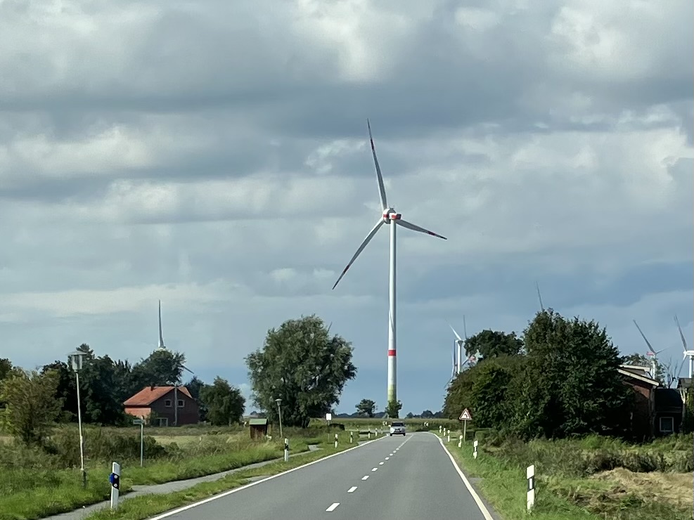 Fine veier, for all del, men for oss som til vanlig farer avgårde på Autobahn syntes vi det gikk vel tregt. Men vi fikk nå sett vindmøller på nært hold i alle fall. Aldri sett så mange vindmøller på så kort tid. Må blåse godt her vil vi tro. Og det er jo når det blåser her vi får billig strøm hjemme i Norge hvis vi har forstått dette rett.