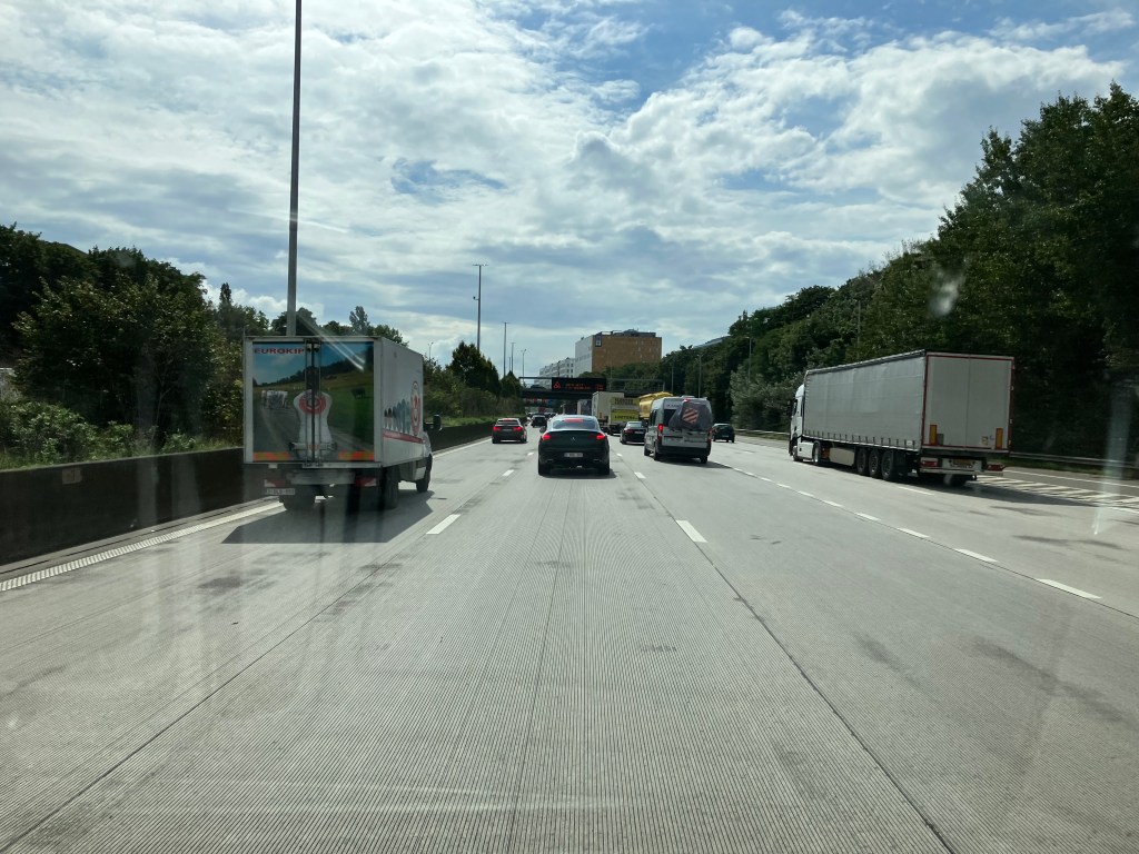 Det var bare motorveier i dag og passelig blanding av trailer-inferno og idylliske kuer. Mye kø rundt Antwerpen, det visste vi og hadde valgt en rute som gikk utenom Antwerpen men likevel klarte den gale kjerringen å få oss gjennom Antwerpen og flaskehalsen Kennedy-tunnellen. Begriper ikke hvordan det går til men hun er ikke enkel hun der kart-damen. Gjør som hun vil.